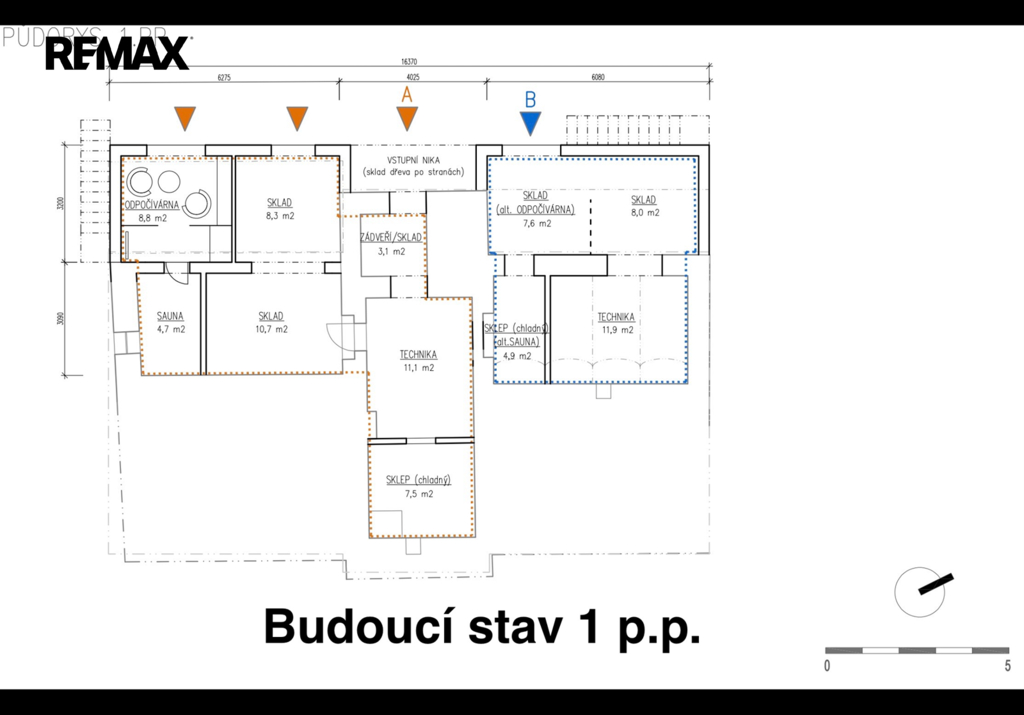 Částečné podsklepení a čtyři komory pro další možnosti využití