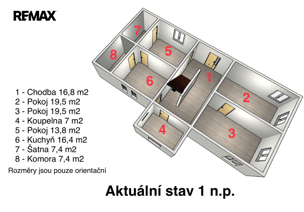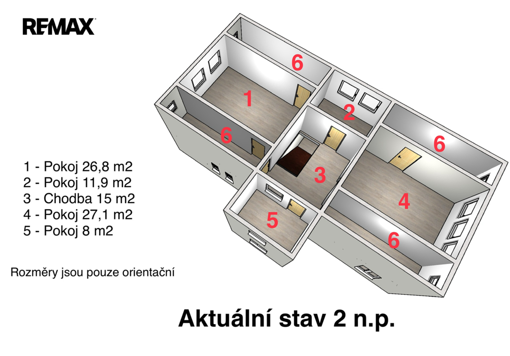 Dispozice 6+1, možnost rozdělení na dvě bytové jednotky