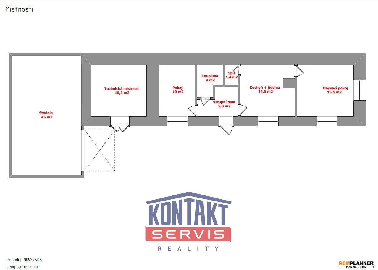 Chalupa samotná nabízí 66 m² užitné plochy, rozvržené do dvou pokojů, kuchyně, koupelny a technické místnosti. Díky masivní konstrukci z kamene a cihel je dům pevný a stabilní, což poskytuje skvělý základ pro jakoukoliv přestavbu podle vašich představ. K dispozici je také praktický sklep o rozloze 4 m², ideální pro uskladnění sezónních plodin či jako vinný sklípek. Součástí stavby je prostorná stodola, využívána jako sklad na dřevo a zahradního nářadí.