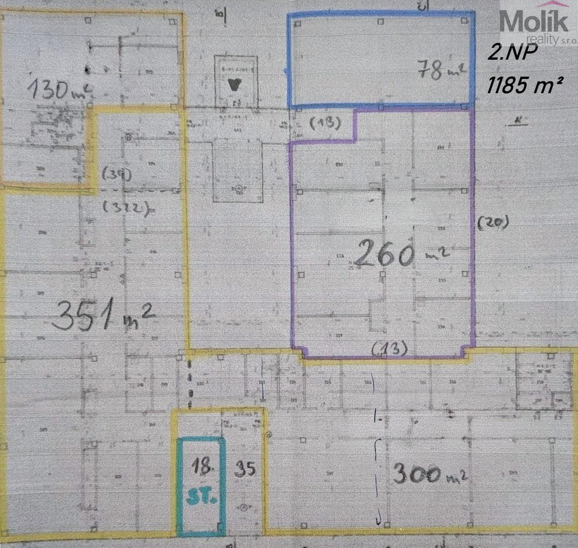 Dispozici najdete v přiloženém plánku, na patře je k dispozici dámské a pánské WC. K dopravě do patra je možné využít schodiště, nákladní výtah, dále třímetrové elektrické dveře z boční strany budovy.