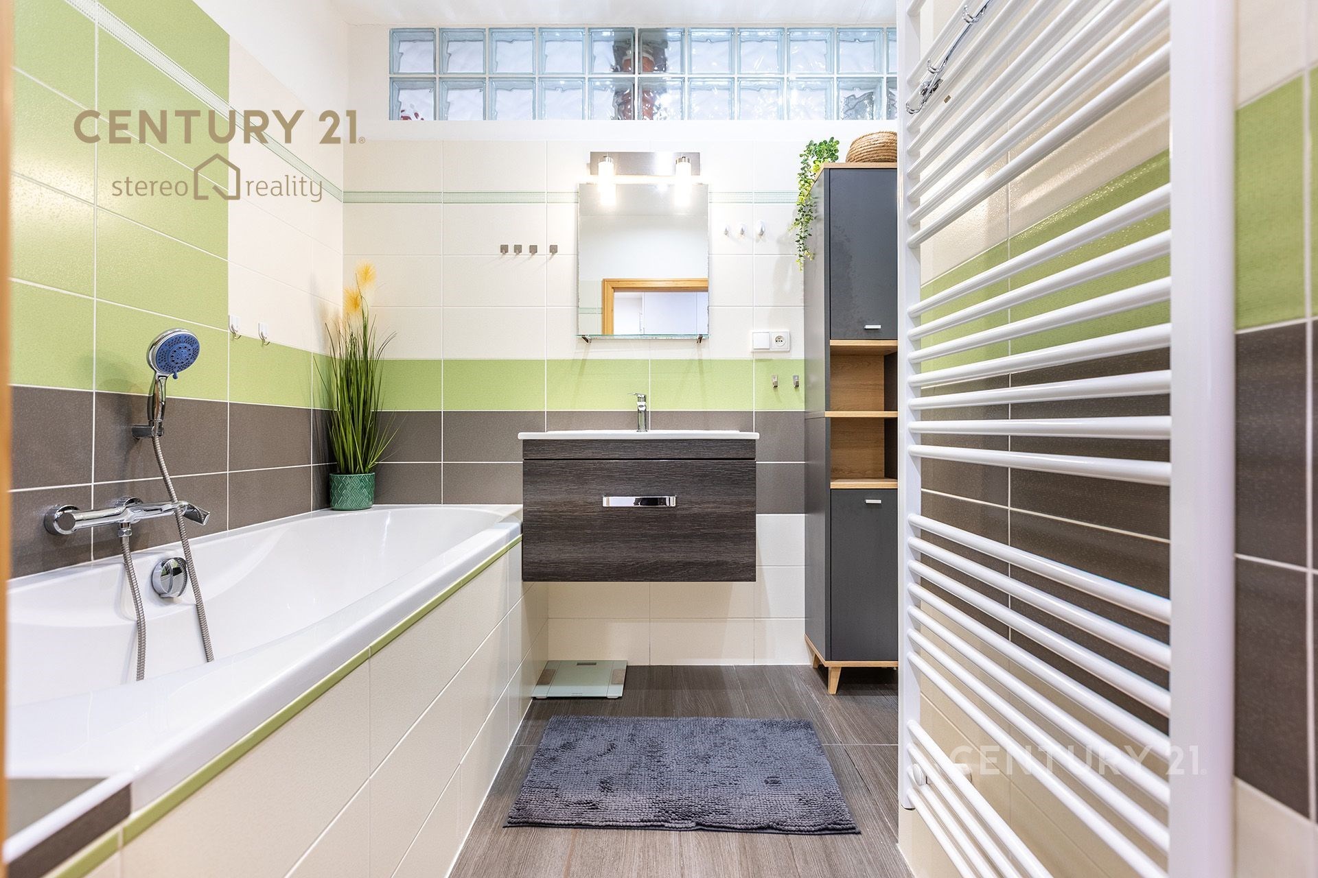 Po vstupu do bytu se nachází prostorná předsíň, ze které je vstup do koupelny a také do menší šatny, která nabízí praktický úložný prostor. Koupelna má zděné jádro a je vybavena vanou i sprchovým koutem, což poskytuje komfort pro každodenní používání.