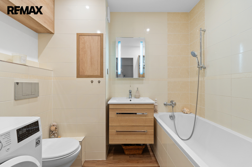 Interiér působí velmi světle, moderně, vzdušně. Dispozice je řešena tak, aby prostor působil vzdušně, přirozeně navazoval a nabídl maximální komfort pro každodenní život. Z lodžie je moc hezký výhled do zeleně a okolí, kde si rádi vychutnáte ranní kávu či večerní posezení v klid, který není v městské zástavbě obvyklý.