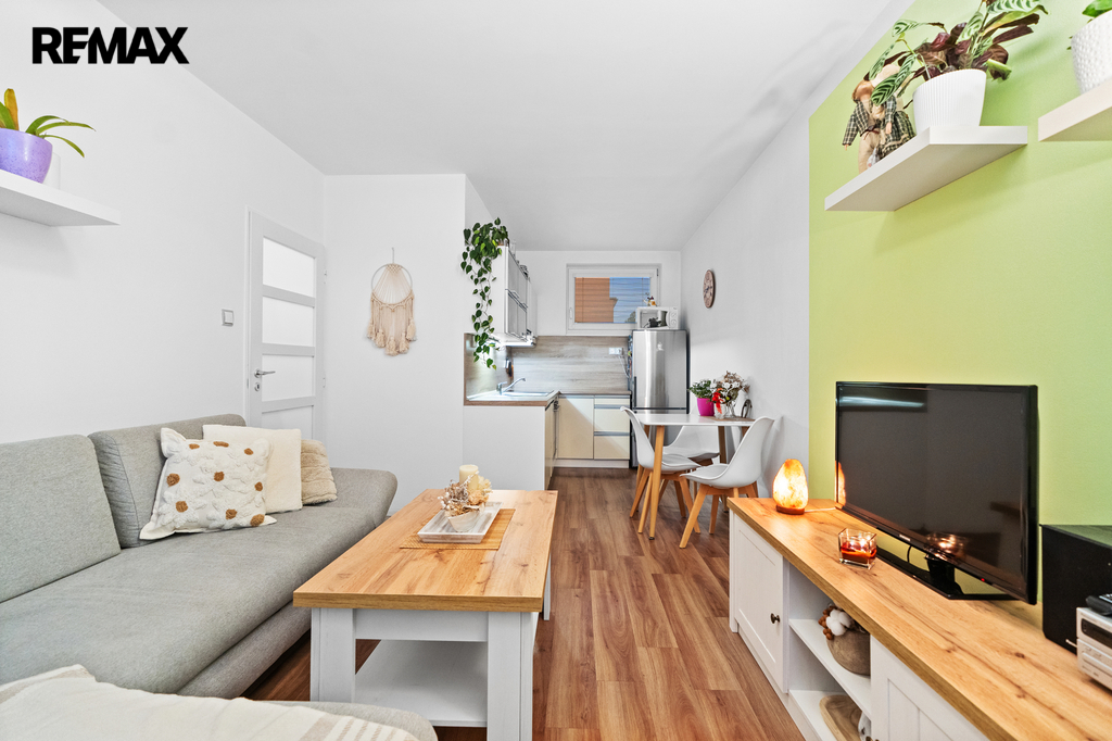 Samotný družstevní byt 2kk+L (44 m2) se nachází v třípatrovém panelovém domě v zástavbě s dostatkem prostoru, klidu a zeleně. Hlavním benefitem je však samotná bytová jednotka – ta prošla kompletní velmi vkusnou rekonstrukcí, která je provedená s důrazem na kvalitu, praktičnost, čistotu a moderní vzhled.