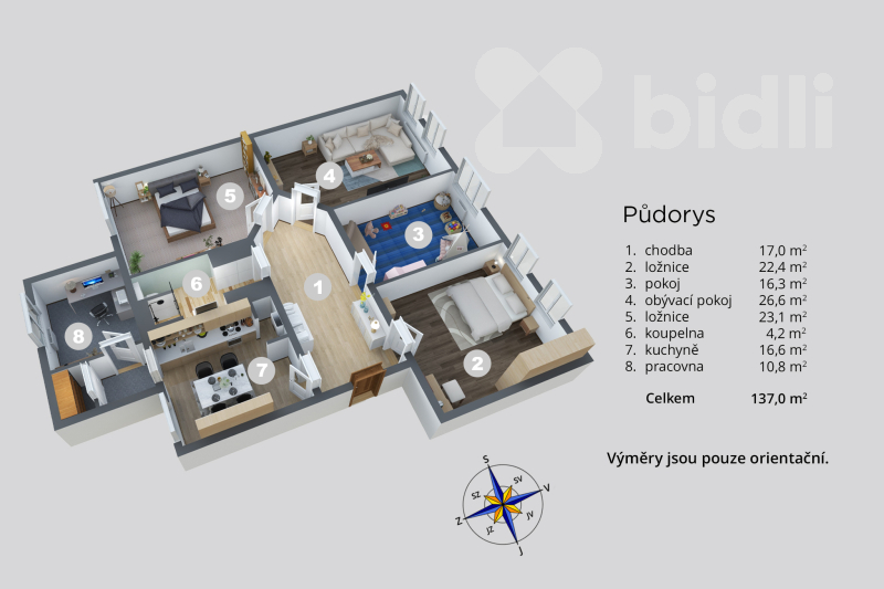 - Celková podlahová plocha: 137 m²