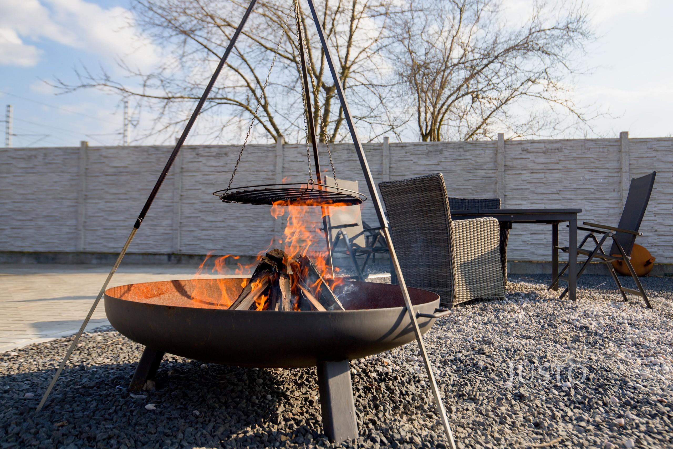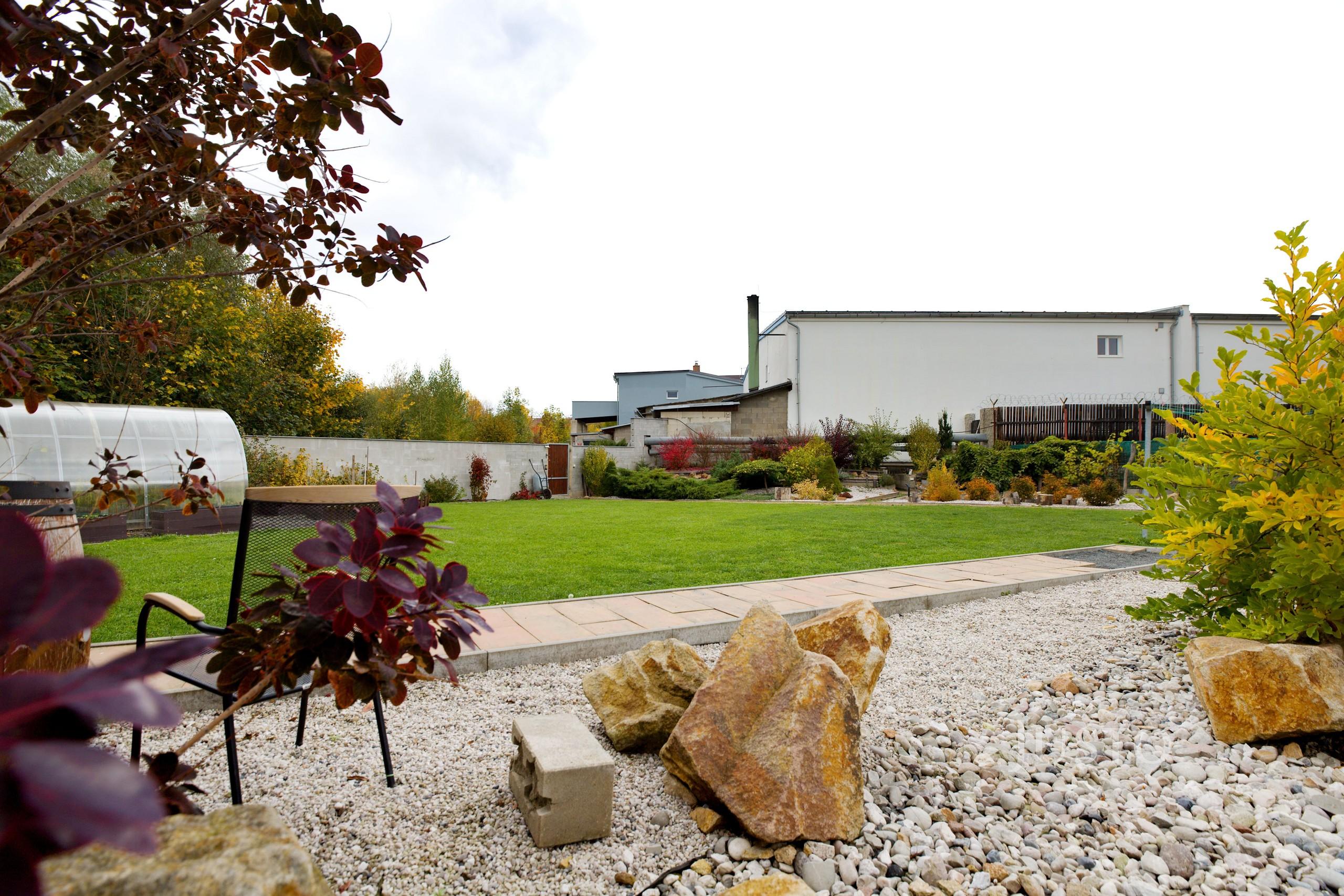 K domu náleží rozsáhlý vlastní pozemek o celkové rozloze 1819 m², z toho zahrada činí 1400 m². K dispozici je prostorná terasa, která je přímo propojena s obývacím prostorem velkými francouzskými okny, což podtrhuje propojení interiéru s exteriérem. Na pozemku je připraveno parkování až pro 4 vozy, celý prostor je oplocen a situován v klidné části obce.