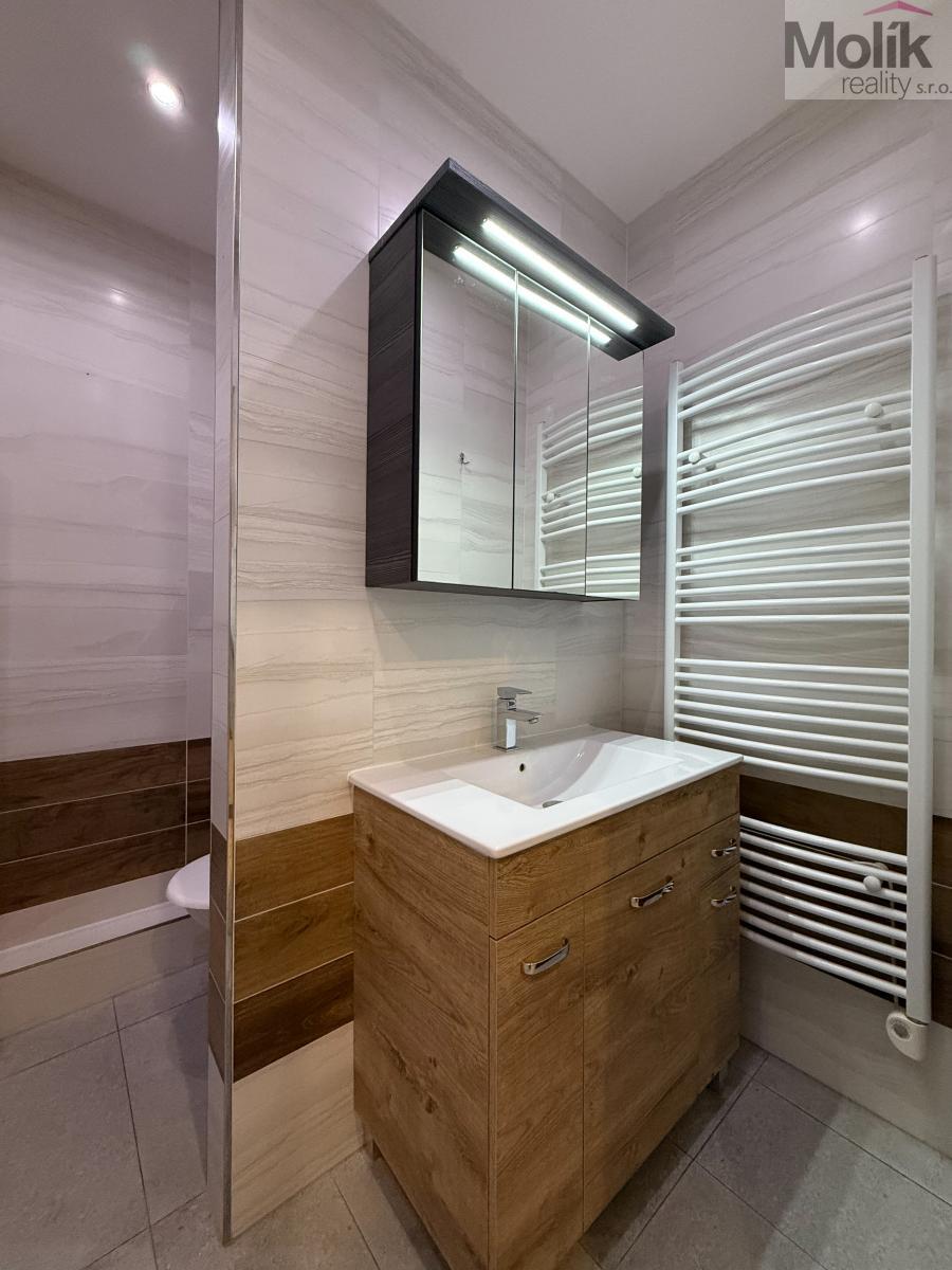 Byt prošel kompletní rekonstrukcí - kuchyňská linka dělaná na míru se sporákem, koupelna s vanou obložená keramickými obklady, podlahové krytiny - dlažba, linoleum, interiérové dveře s obložkami, nové rozvody elektřiny, vody a odpadu.