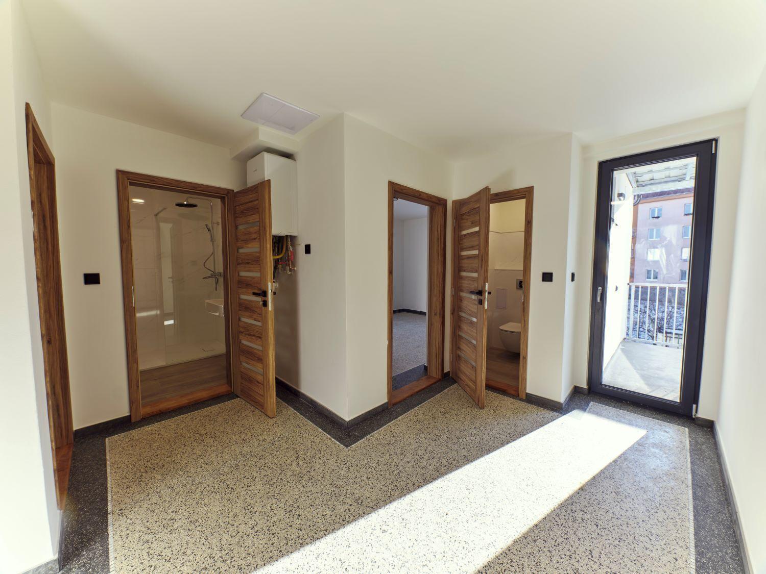 Byt 3+kk o výměře 72 m² včetně balkonu o výměře 3,43 m² se nachází ve 2.NP domu v ulici Ruská 1912.