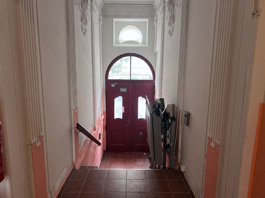 Kuchyně s vestavěnými spotřebiči. Na podlahách jsou původní, renovované parkety a dlažba. Z obývacího pokoje je přístup na balkon, situovaný směrem do dvora a na jižní stranu Celkově byt působí světlým a prostorným dojmem – kombinuje prvky historické architektury s moderním standardem bydlení.