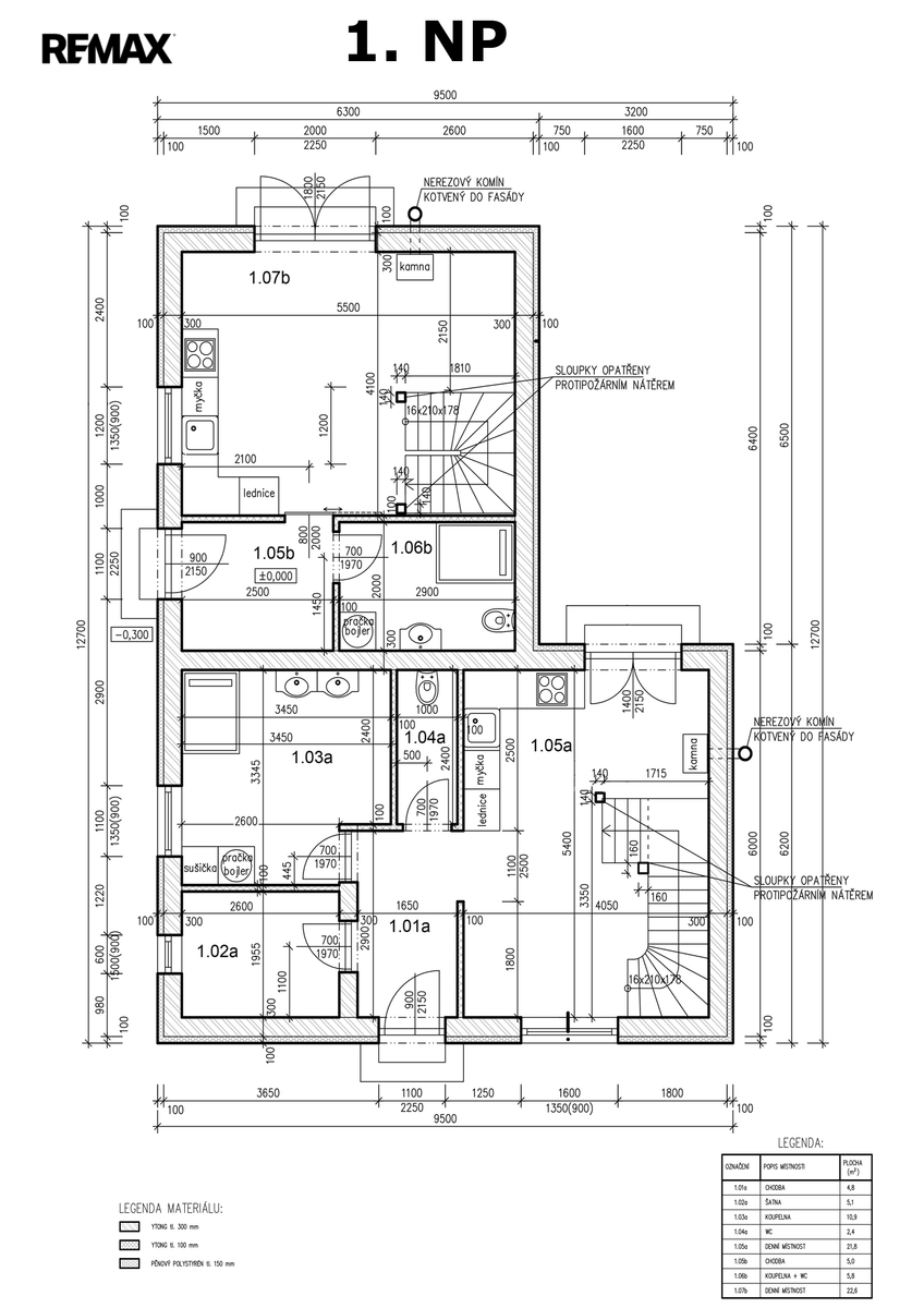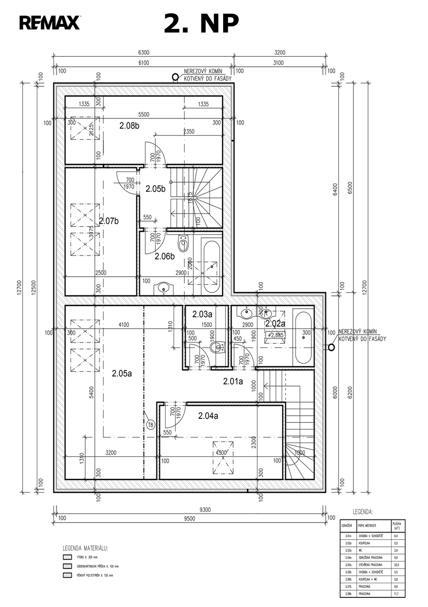 Charakteristika hlavní budovy: Jedná se o zděnou dvoupodlažní budovu bez podsklepení. Budova postavena z Ytong 30 cm + 15 cm zateplení bílý polystyren, dále nataženo do lepidla. Střešní krytina Mediterran - terran Zenit, vchodové dveře, okna a balkónové dveře zn. Veka. Vytápění a ohřev vody plánované elektřinou. Energetický průkaz budovy není k dispozici.