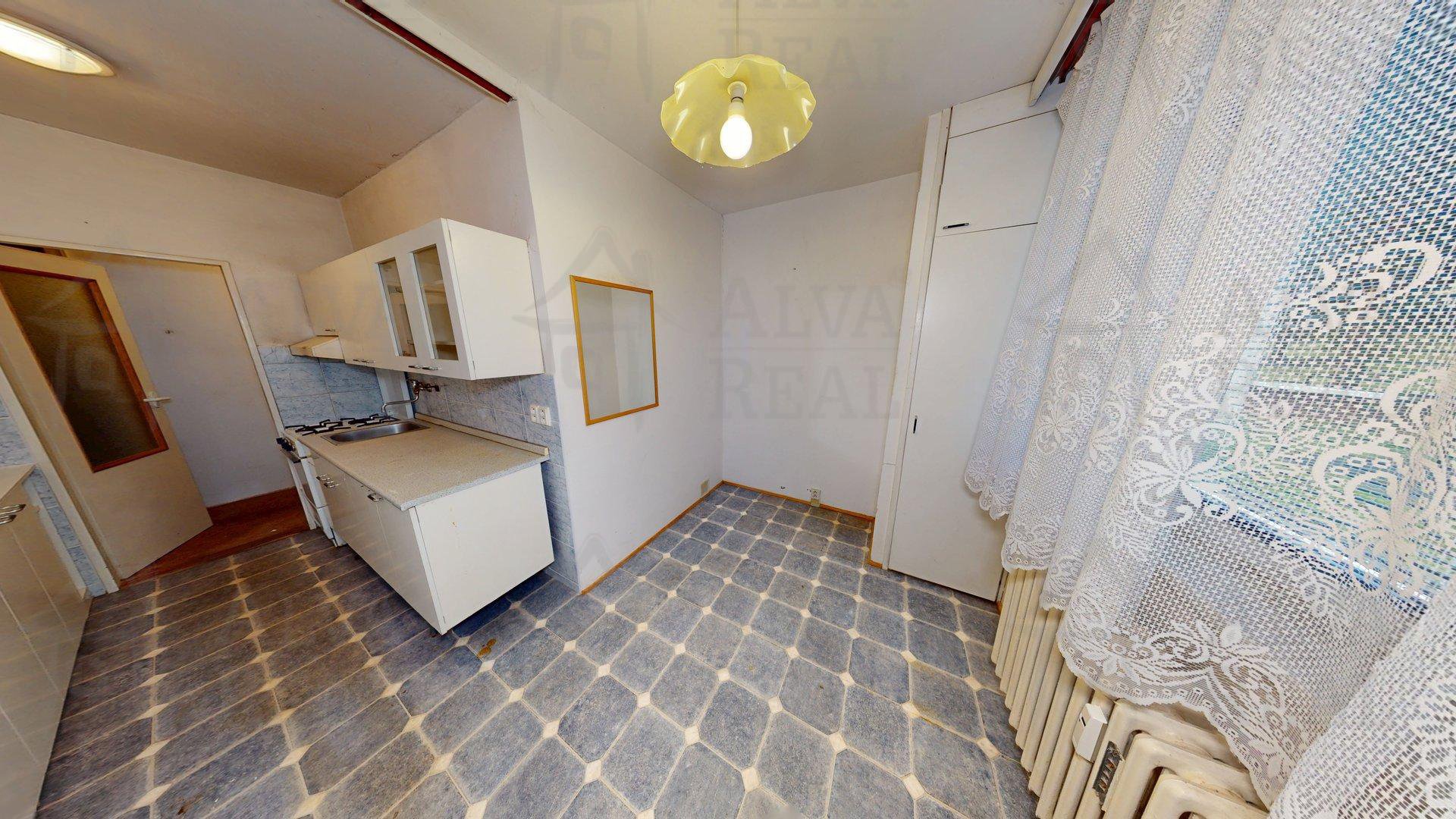 Dispozice: Ložnice 16,21 m²; kuchyně 12,36 m²; koupelna 3,61 m²; předsíň 3,91 m². K bytu náleží sklep/komora, který se nachází v přízemí budovy o výměře 1,70 m².
