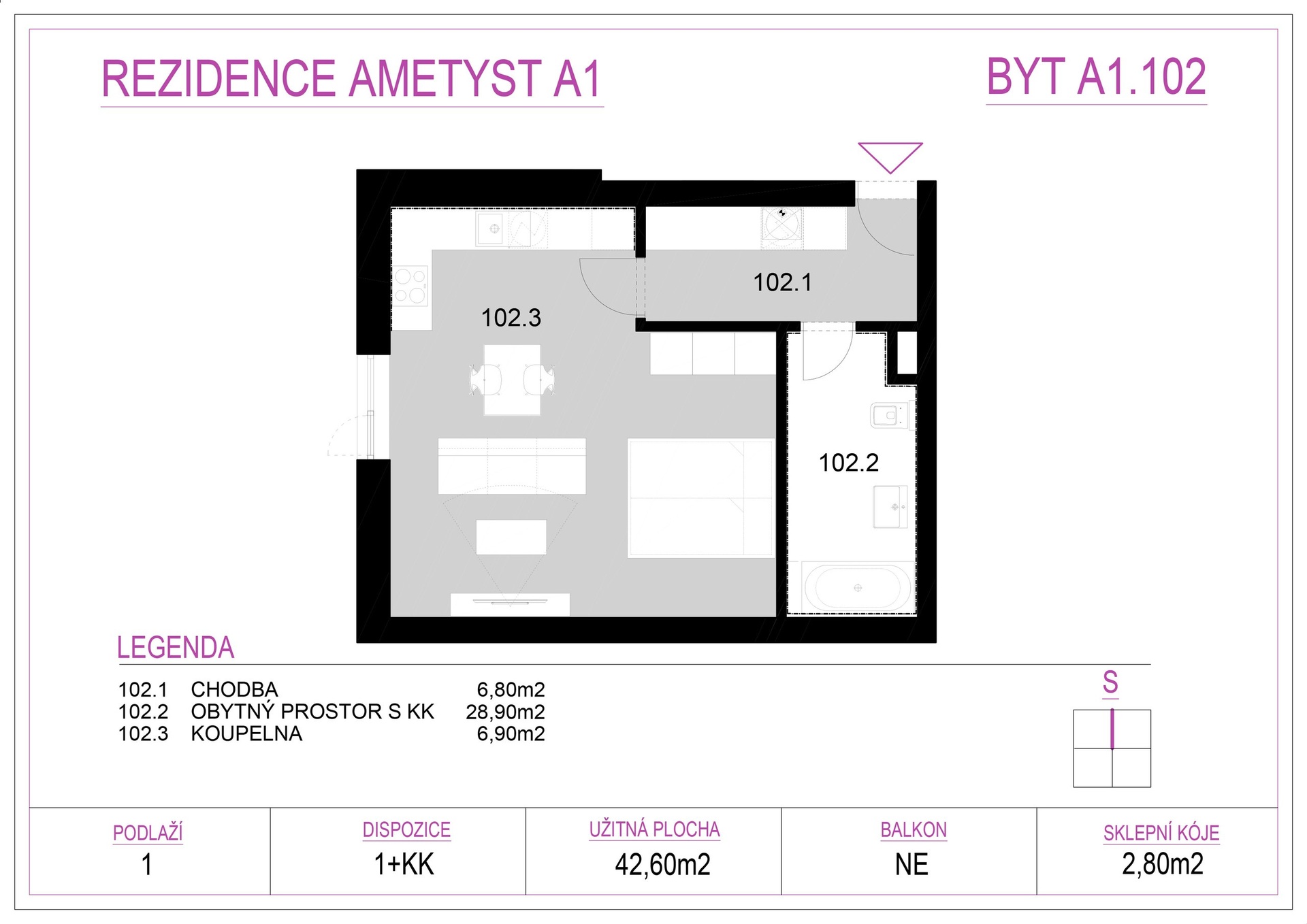 Prodej bytu 1+kk s balkonem v projektu Rezidence Ametyst – Tišnov