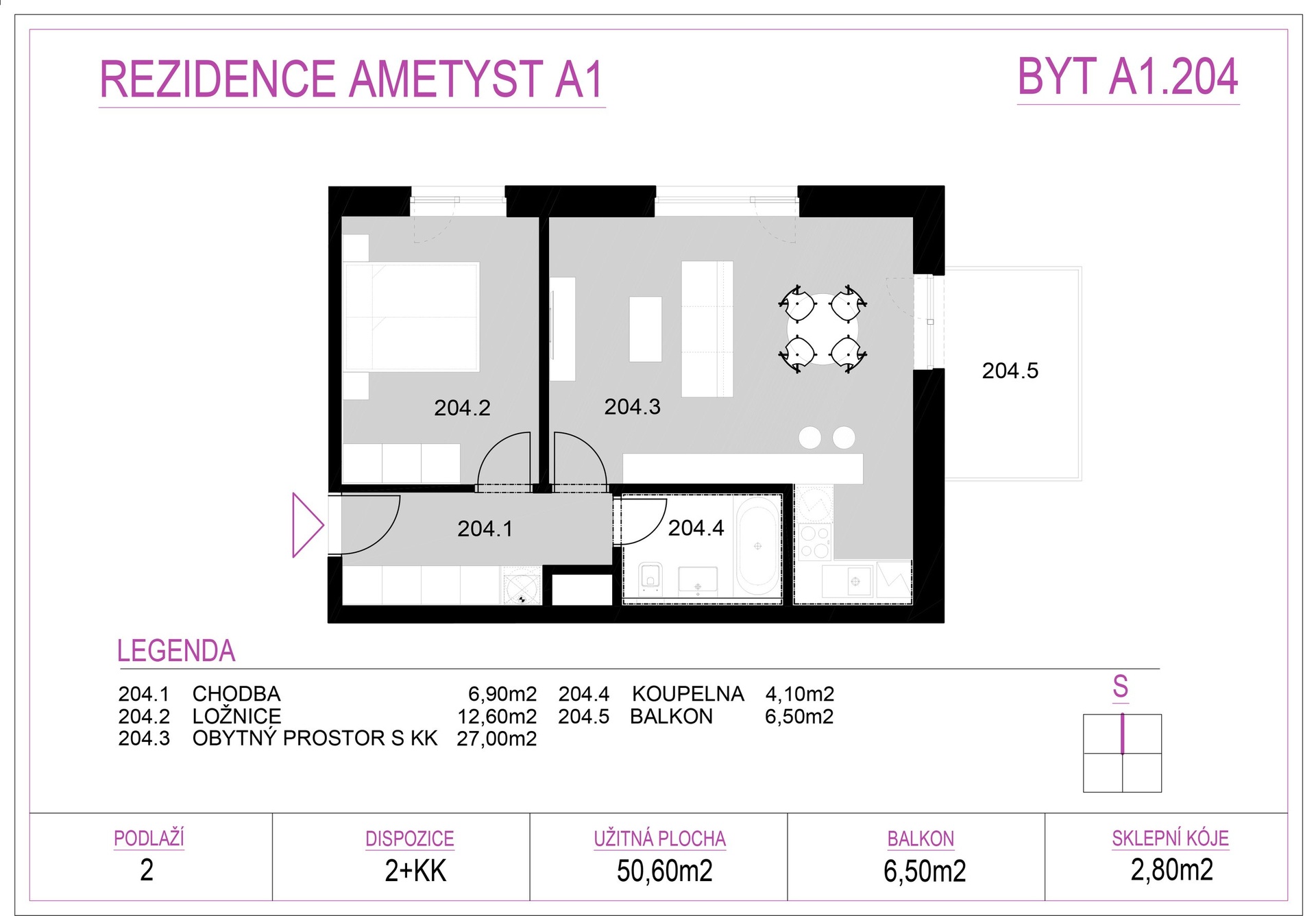 Prodej bytu 2+kk s balkonem v projektu Rezidence Ametyst – Tišnov