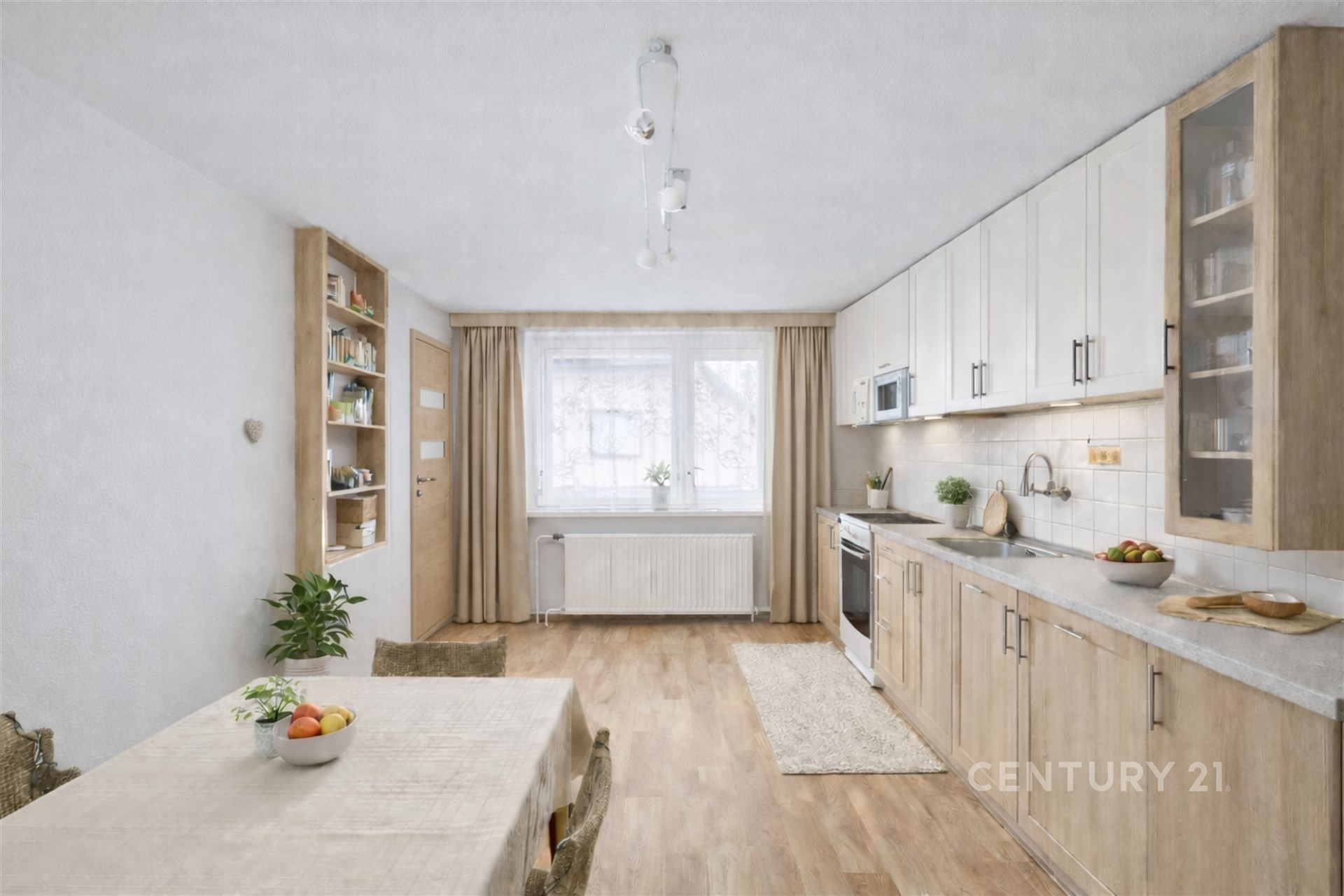 Součástí domu je také zasklená terasa s krbem s přímým vstupem na dvůr, která se tak stává vaší soukromou oázou, kde můžete nerušeně relaxovat s rodinou nebo přáteli po většinu roku.