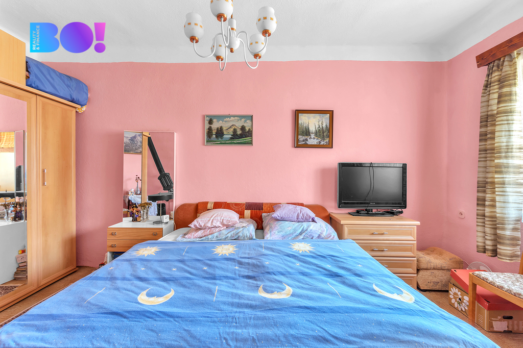 Dispozice domu je prakticky řešena: vstupní veranda, centrální chodba, ze které se vlevo vstupuje do dvou samostatných pokojů. Na pravé straně se nachází prostorná kuchyně s jídelní částí, navazující ložnice, koupelna a samostatné WC.