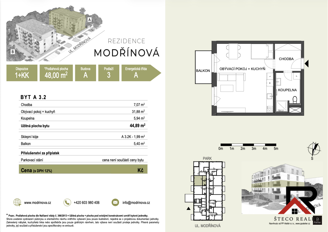 | Dispozice/podlahová plocha: | 1+kk/48 m² |