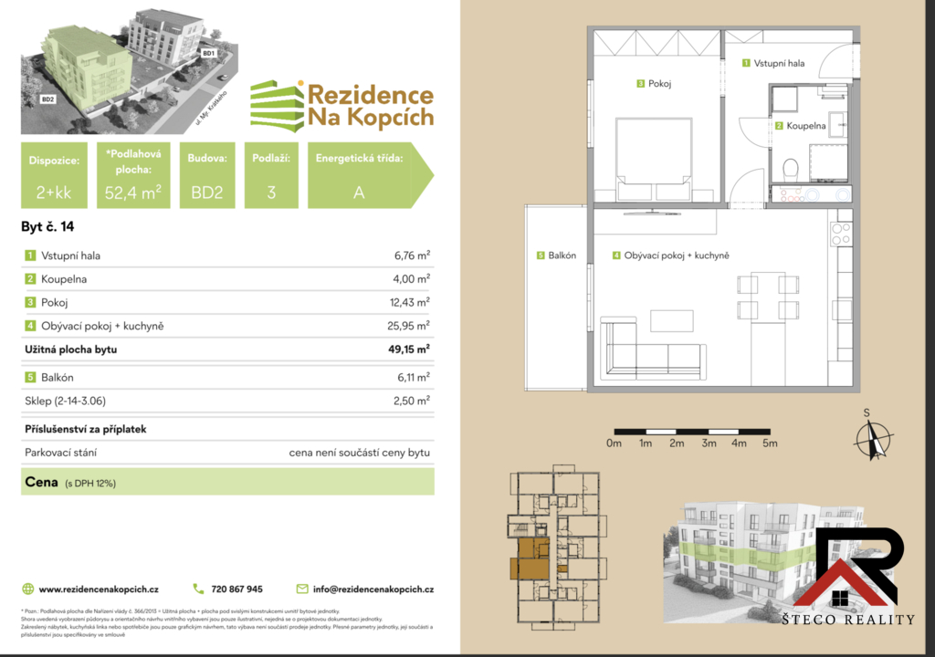 | Dispozice/podlahová plocha: | 2+kk/52 m² |