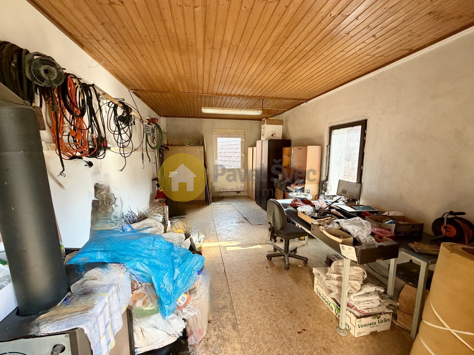 V poslední době vystavěná nová dílna/kolna s obytným podkrovím (umístěna krbová kamna s výměníkem a plánem ústředního vytápění s deskovými tělesy - k dispozici).