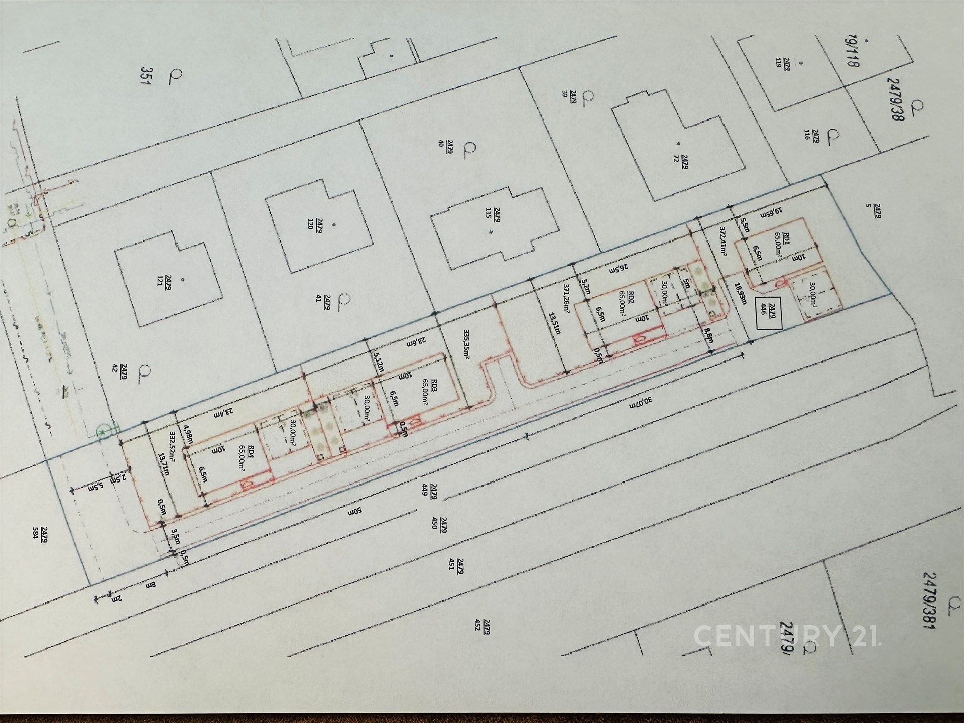 1. pozemek 332,52m² (již zamluvený)