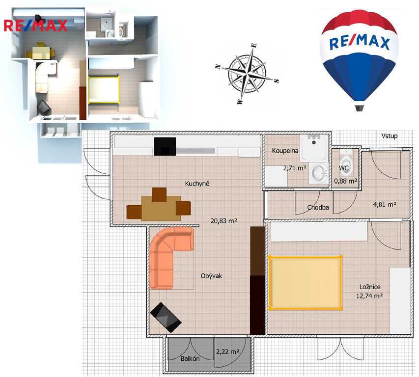 | Dispozice/podlahová plocha: | 2+kk/44 m² |