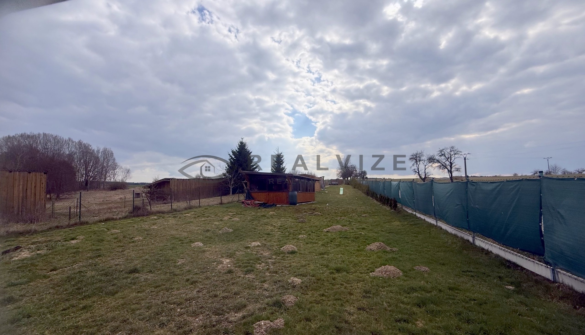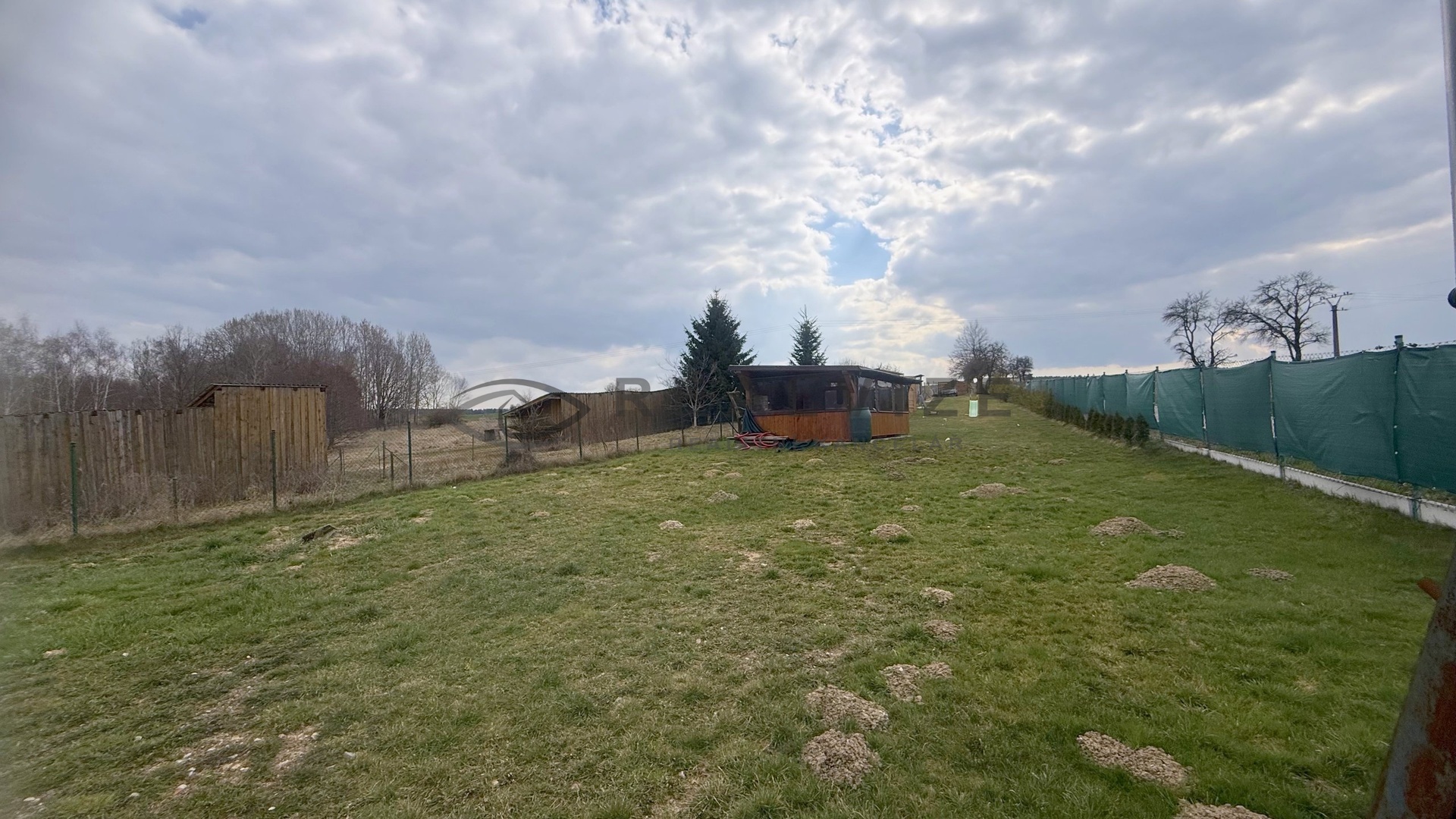Výhodou je kompletní oplocení se dvěma branami, strana sousedící s obecní komunikací je osázená thujemi, na pozemku stojí dřevěná pergola, dřevník a bouda na nářadí.
