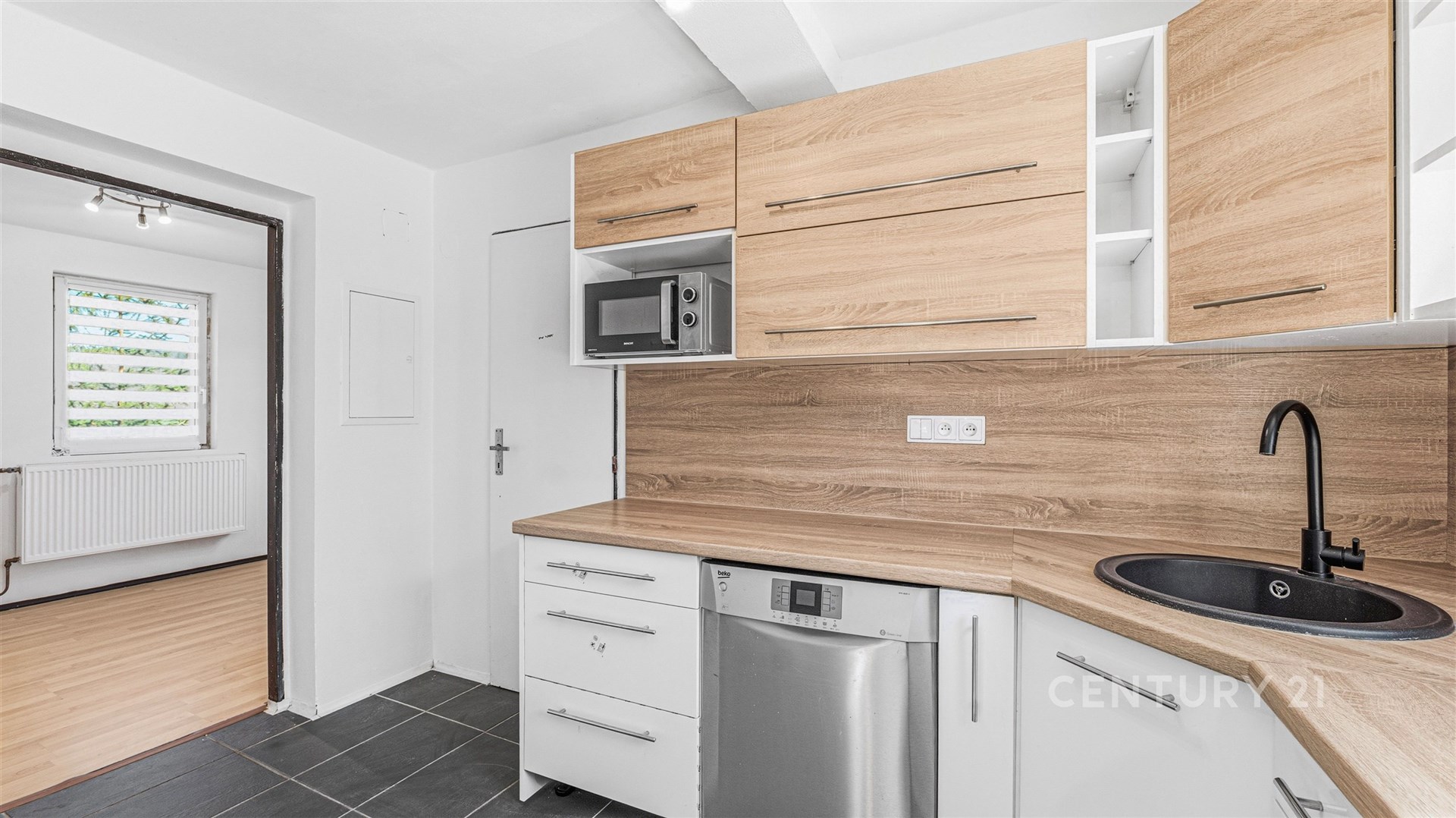 Obytný prostor s novou kuchyňskou linkou, novými podlahami a rozvody elektřiny. Koupelna s WC.