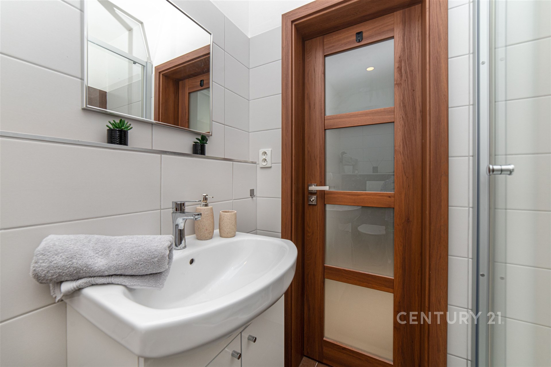 Podnajímá se částečně vybavený – moderní kuchyňská linka se spižírnou a spotřebiči (myčka, pračka, trouba, indukční deska, digestoř, lednice) a praktická vestavěná skříň v chodbě. Zděné bytové jádro, koupelna se sprchovým koutem a WC.