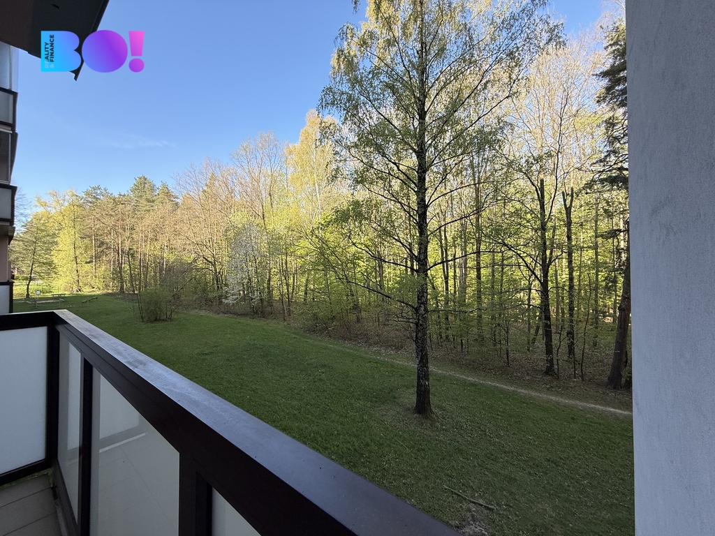 Široký balkón umožňuje příjemné posezení s výhledem do zeleně a navíc v závětří, díky předsazené stěně navazujícího bytového domu.