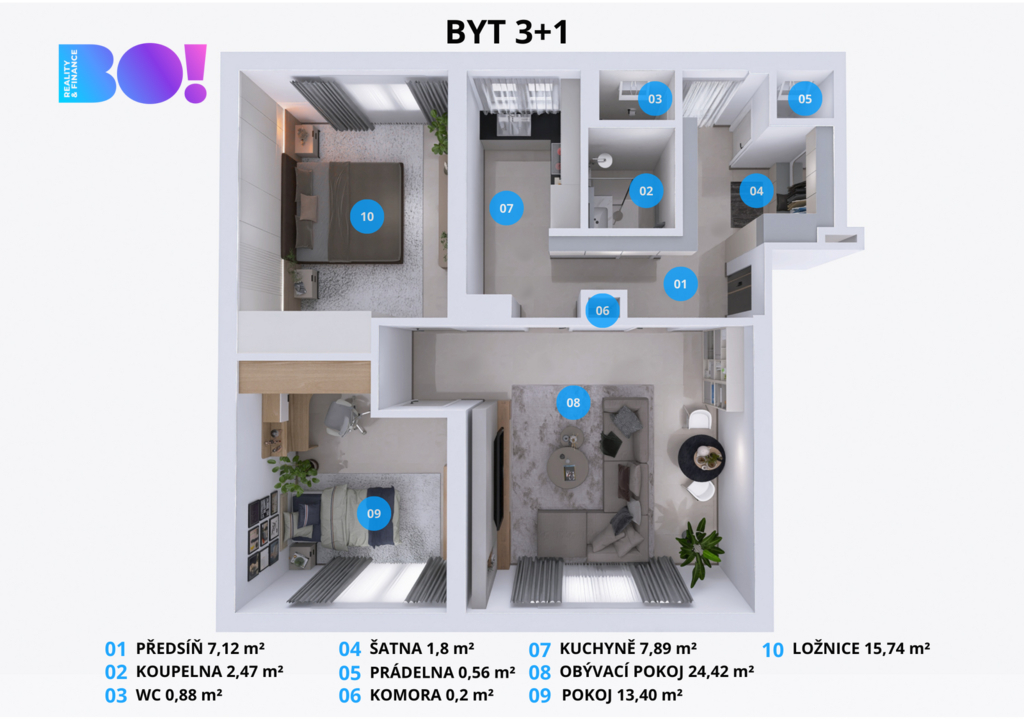 - Dispozice bytu: 3+1
