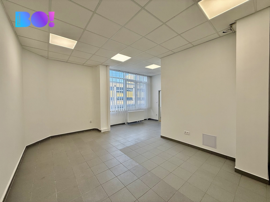 Kancelář je situovaná v klidné části administrativní budovy s výbornou dostupností, pár kroků od hlavní třídy a všech služeb. Interiér je laděn do čistého, moderního stylu – keramická dlažba, podhledové osvětlení, velká okna s vertikálními žaluziemi a decentní barevnost vytvářejí profesionální, ale zároveň příjemné pracovní prostředí.