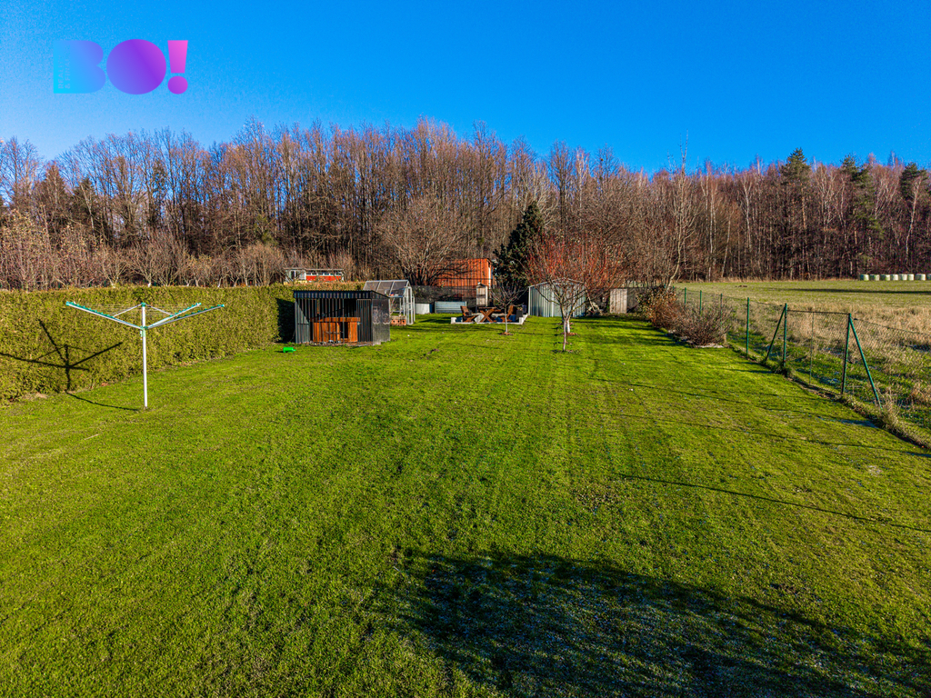 Velkým benefitem je krásně upravená a udržovaná zahrada, která poskytuje maximální soukromí. Najdete zde velký krytý altán s příjemným posezením a příručním skladem, zahradní domek, skleník, ovocné stromy, udírnu a také bazén o průměru 4,6 m a hloubce 1,10 m s filtrací a kompletní izolací. Celý pozemek je oplocený a sousedství je velmi příjemné.