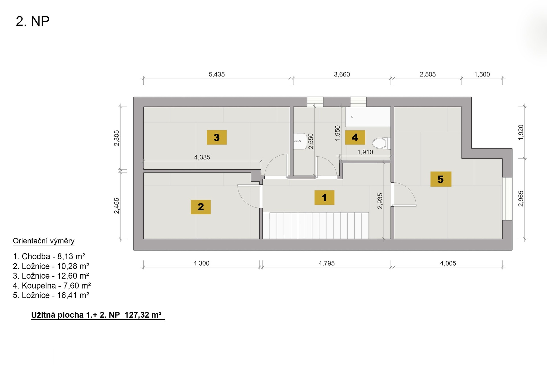 - Zastavěná plocha: 127 m²