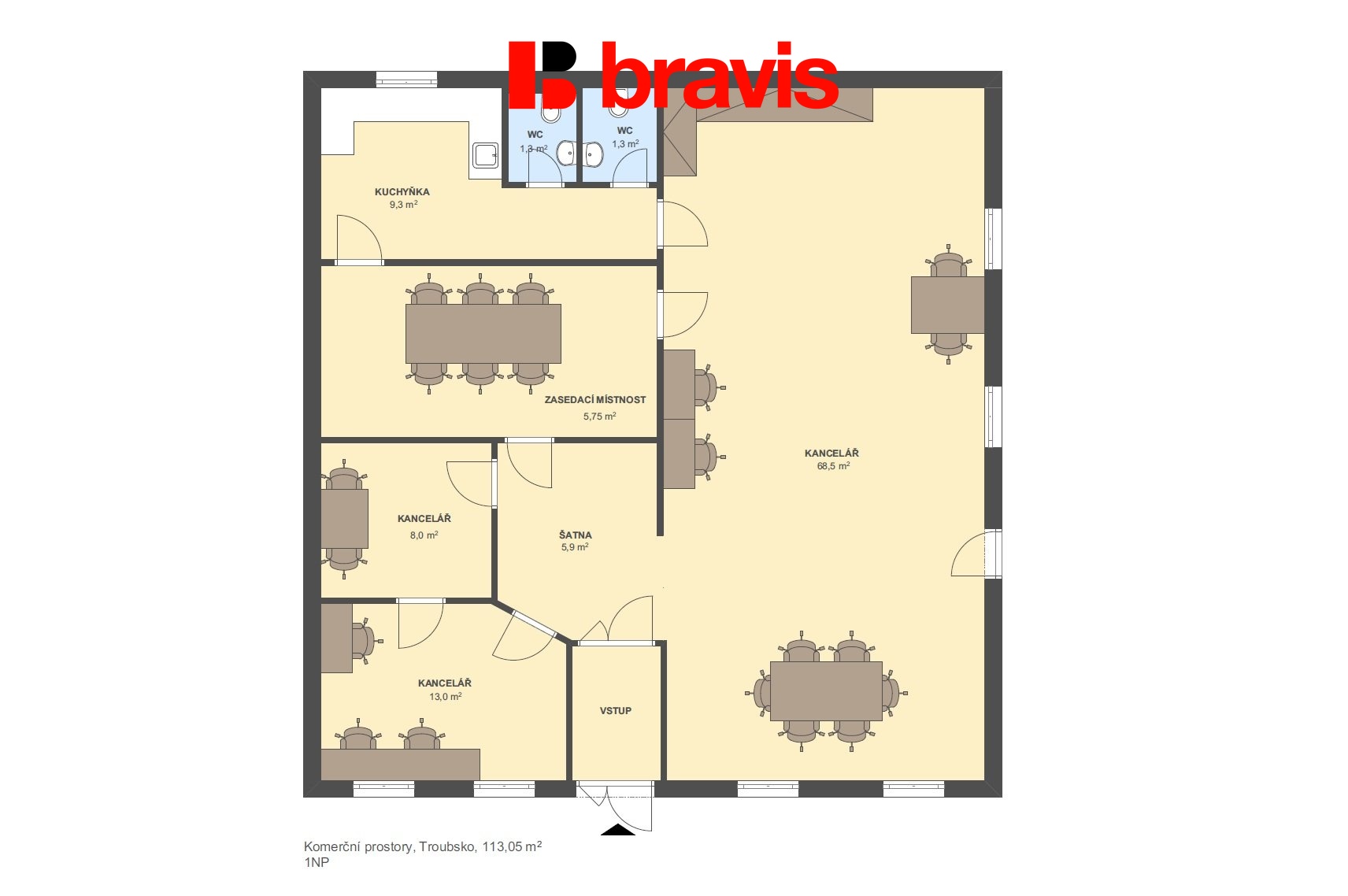 • 3 samostatné kanceláře