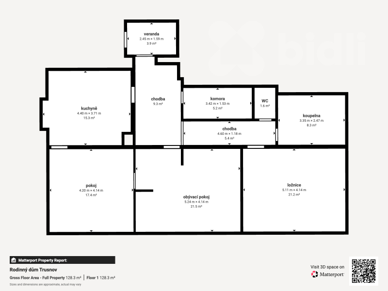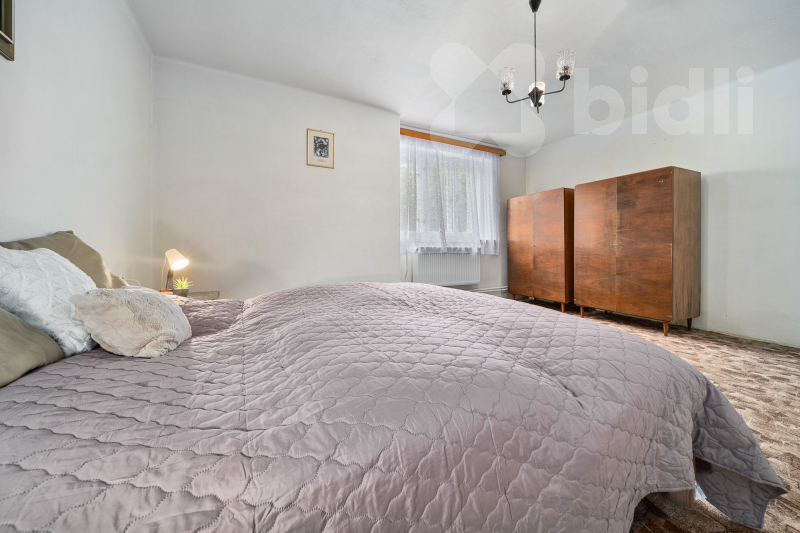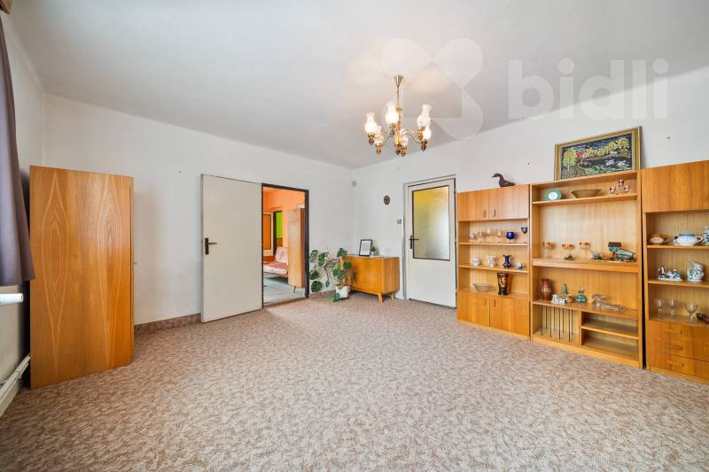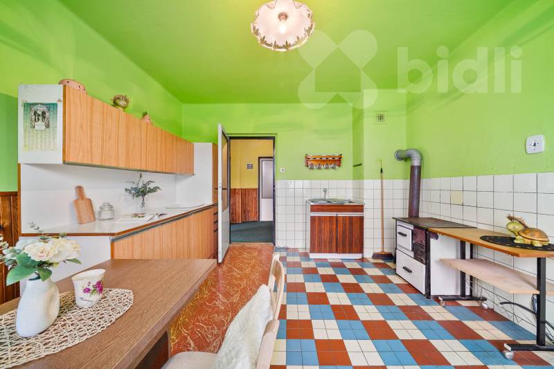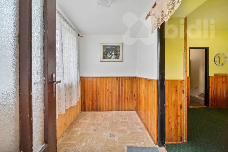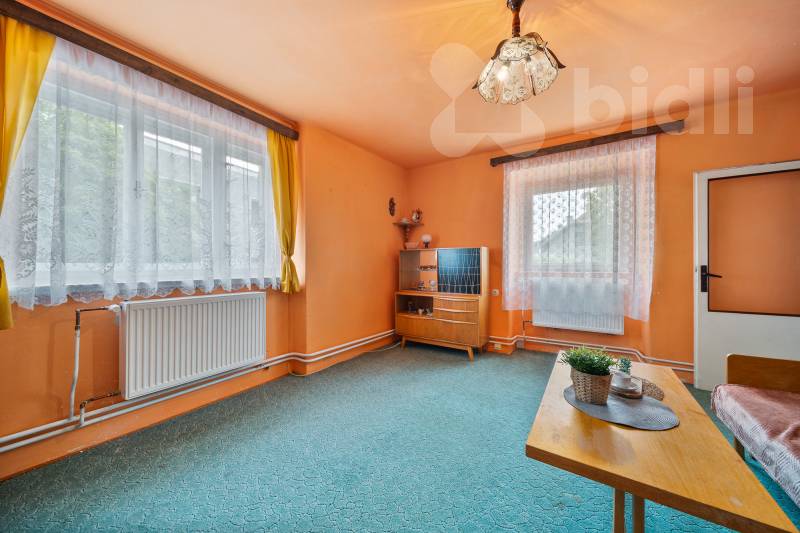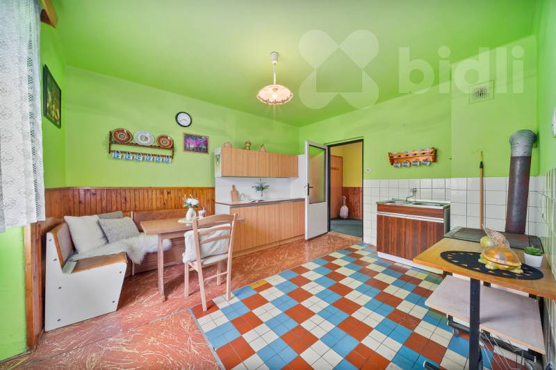 Dispozici tvoří veranda, vstupní chodba, komora, prostorná kuchyně s kamny, obývací pokoj, dvě ložnice, koupelna s vanou a toaleta. Místnosti jsou světlé a prostorné, dům tak poskytuje příjemné rodinné bydlení nebo útulné zázemí pro rekreaci. Výhodou je možnost rozšíření o podkroví a úprava celého domu dle vlastního vkusu. Dům zároveň splňuje podmínky pro případné využití některých dotačních programů na rekonstrukce, například "Nová zelená úsporám" či "Oprav dům po babičce", což může znamenat úsporu nákladů na rekonstrukci. Na pozemku se dále nachází garáž a kůlna. Vytápění je řešeno plynovým kotlem, ohřev vody bojlerem, odpady jsou svedeny do jímky. V kuchyni jsou navíc kamna, která navozují útulnou atmosféru.