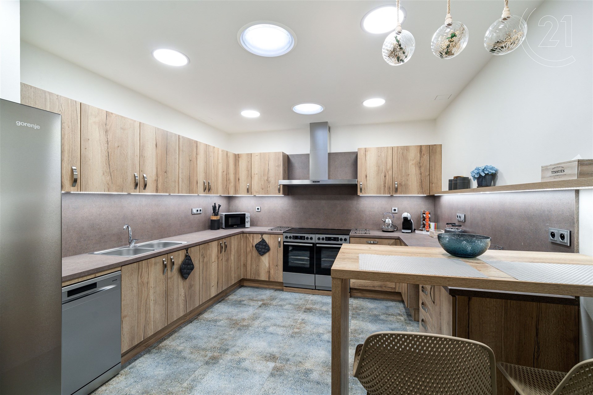 Apartmány jsou kompletně zařízené včetně kuchyňské linky se spotřebiči a nádobím, koupelen a obytných místností. Prodej je včetně zařízení.