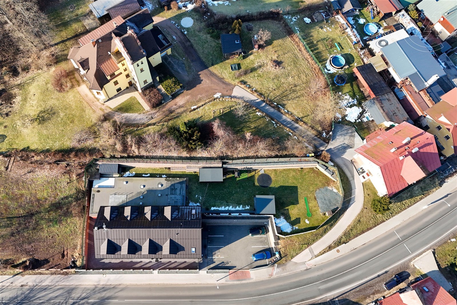 U domu je pozemek s vybudovanými přípojkami, který lze využít na stavbu dalších 2 apartmánů ( je již vyhotovený návrh) nebo jiný způsob využití.