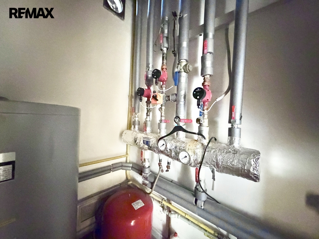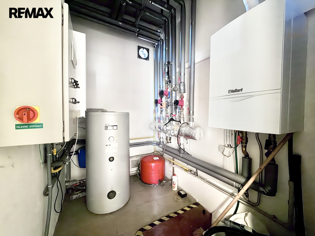 V objektu - obecní vodovod, napojen na kanalizaci, elektřina 220 W a 380 W, ohřev vody a vytápění plyn.