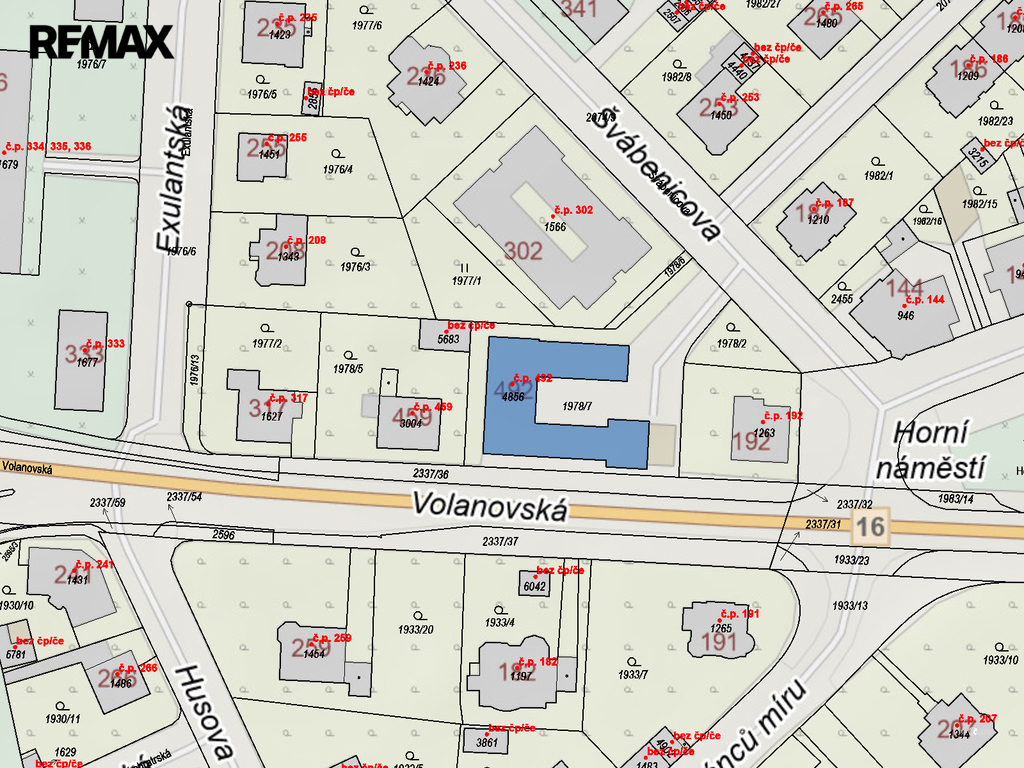 celková plocha prostor: cca 514m², celková plocha pozemku včetně budovy1359 m²