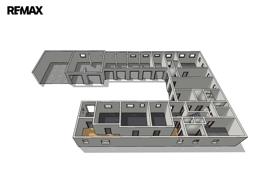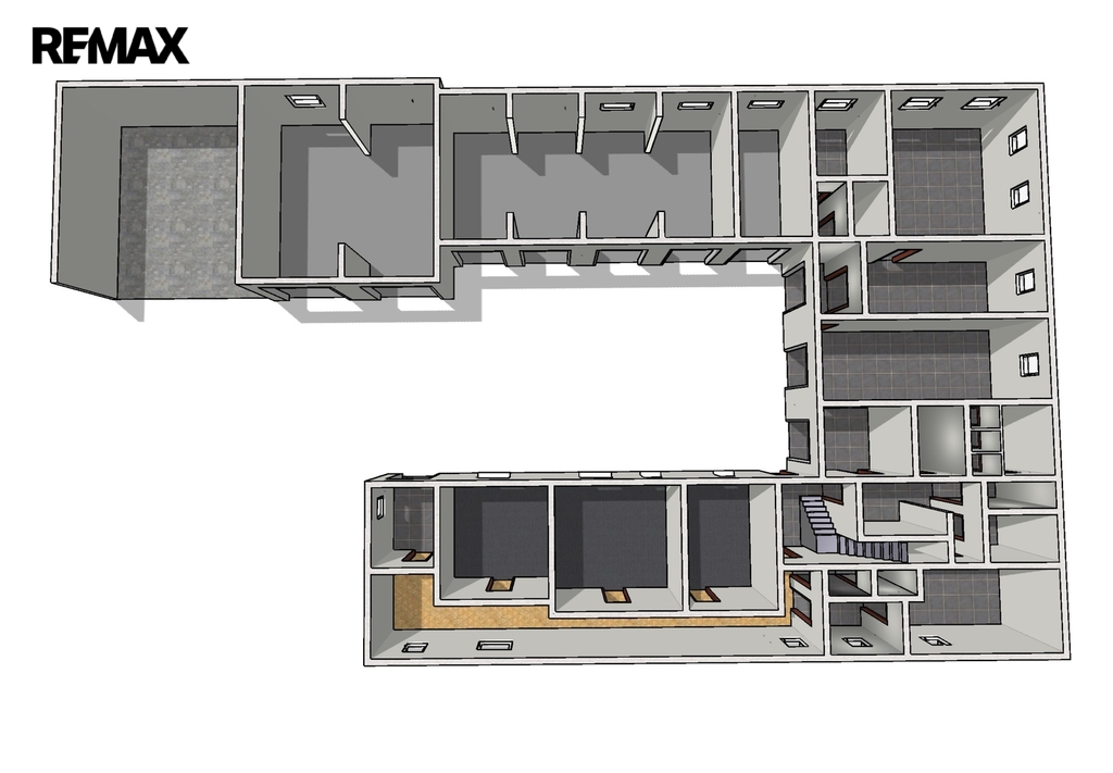 Objekt nabízí praktické dispoziční řešení s dostatkem místností, zázemím pro zaměstnance i parkováním.