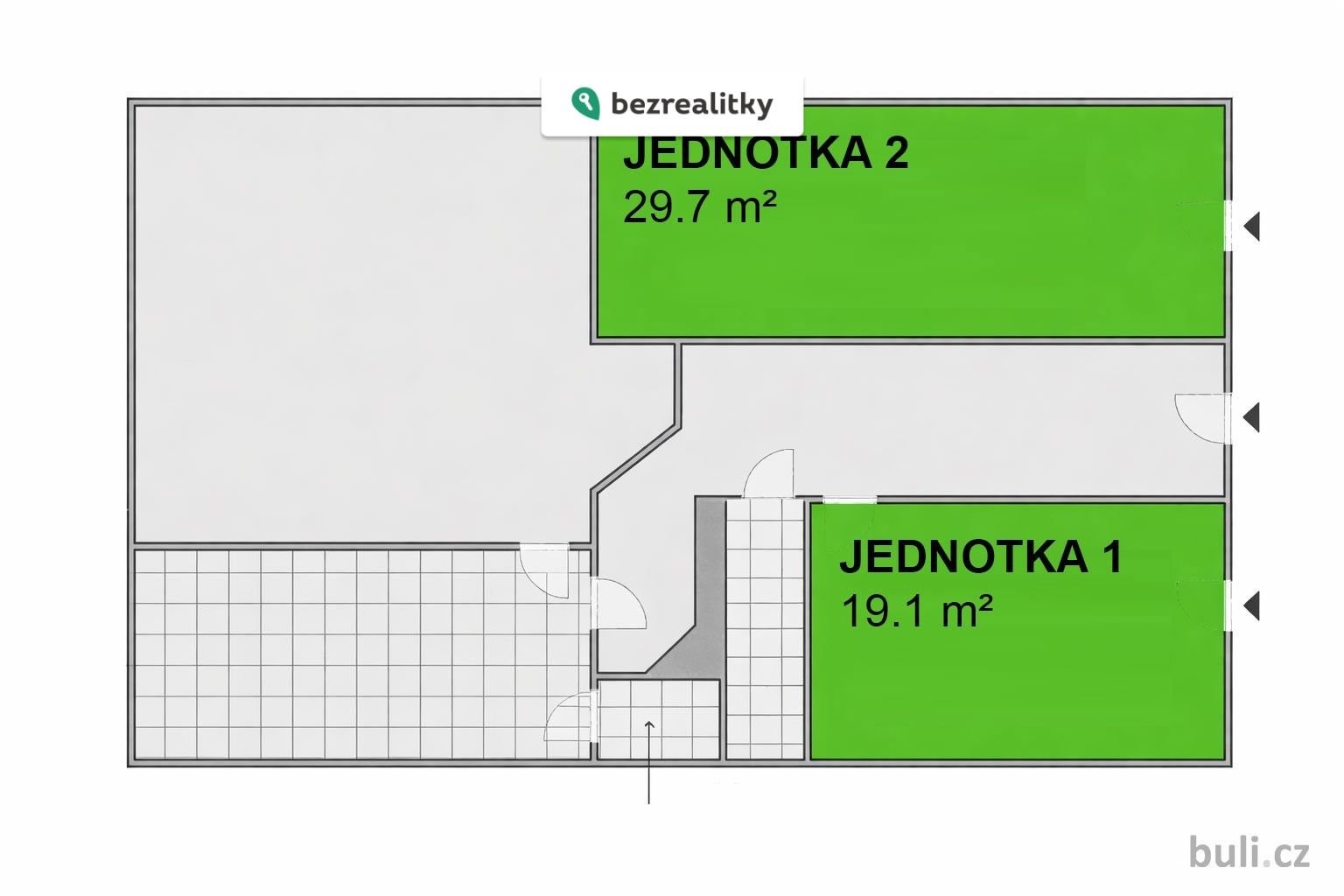 Nemovitost je rozdělena na dvě samostatné obchodní jednotky: