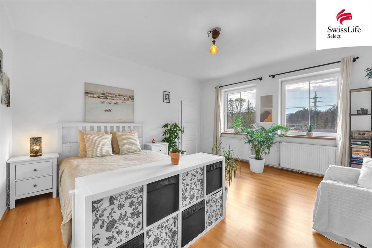 Na hranici pozemku protéká potok (s vysokým břehem bez historických povodňových událostí) Důležité: Nemovitost je standardně pojištěna včetně rizika povodně, pojišťovna s umístěním domu počítá a nijak neomezuje běžné pojistné krytí.