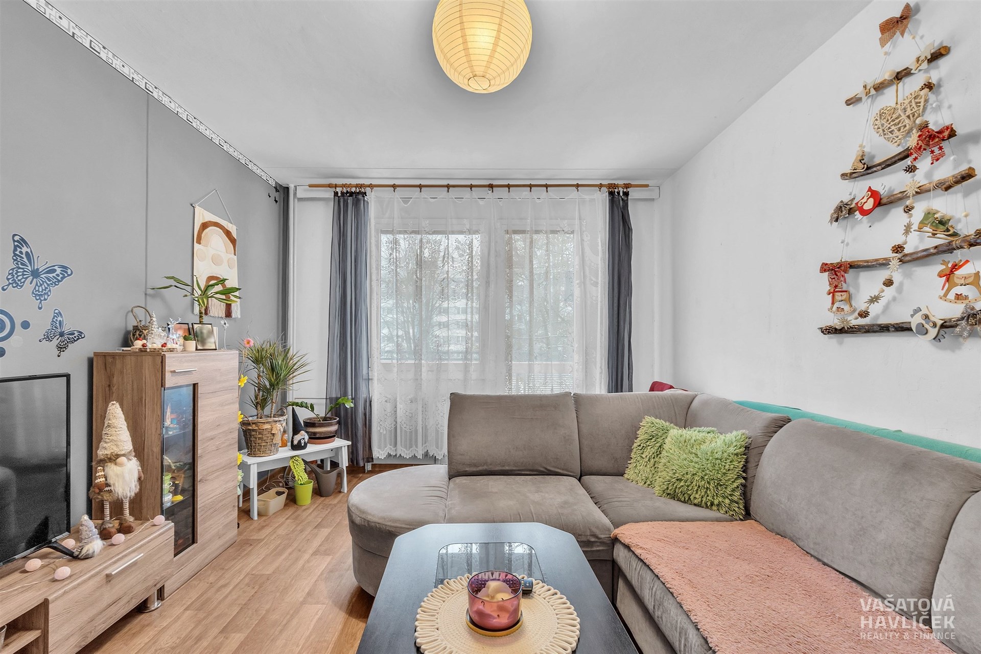 Byt je po částečné rekonstrukci a je připraven k okamžitému bydlení. Má upravené umakartové jádro, zánovní kuchyňskou linku a na podlahách zachovalé linoleum. Dispozici bytu tvoří: kuchyň, dva pokoje, chodba, koupelna se sprchovým koutem a samostatné WC. Z obývacího pokoje vede vstup na příjemně prosluněnou lodžii. Byt je orientovaný na severovýchodní, jihovýchodní a jihozápadní stranu. K bytu patří sklepní kóje a dále je možnost využívat v domě společnou kolárnu. Vytápění a ohřev vody zajišťuje veřejné ústřední topení.