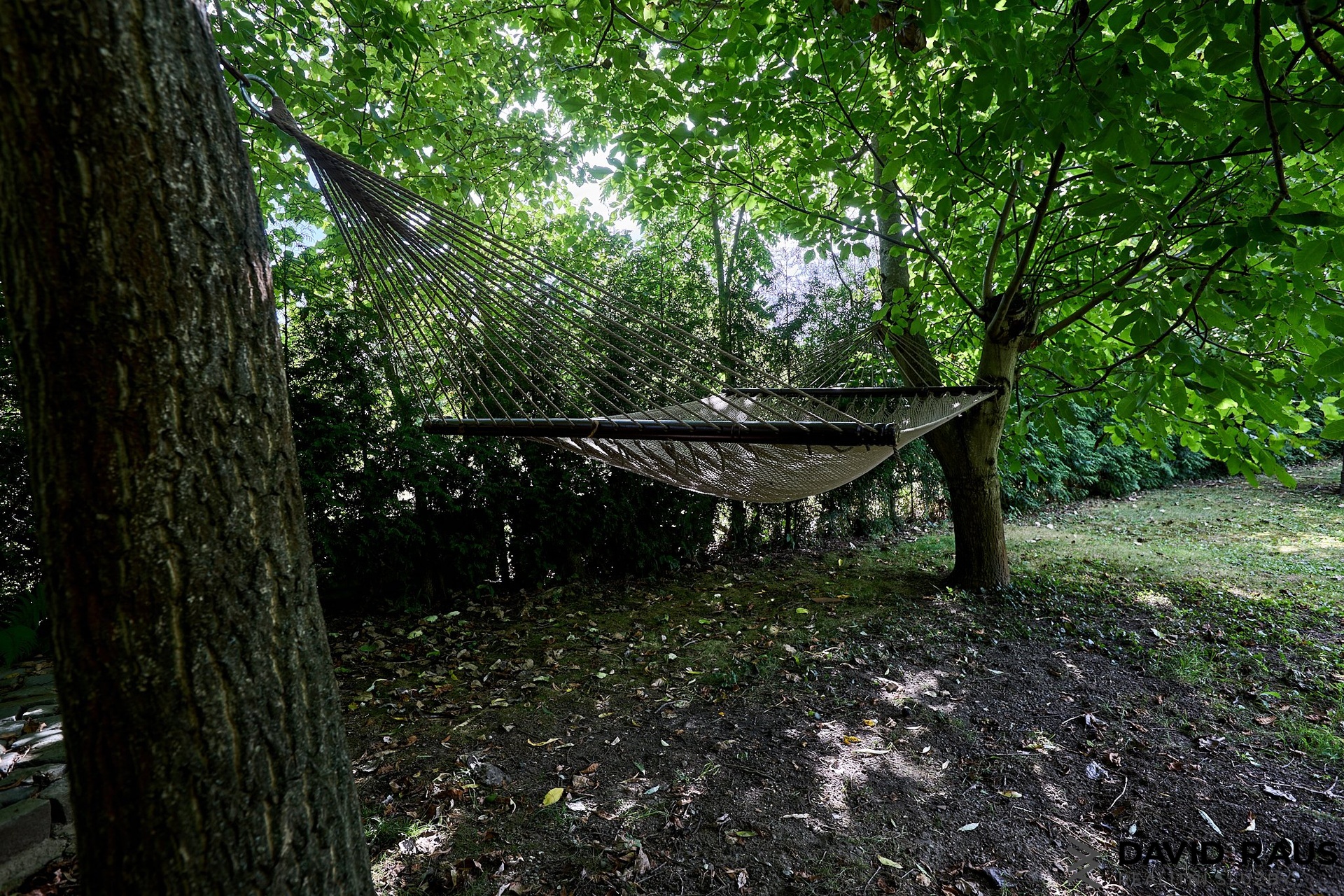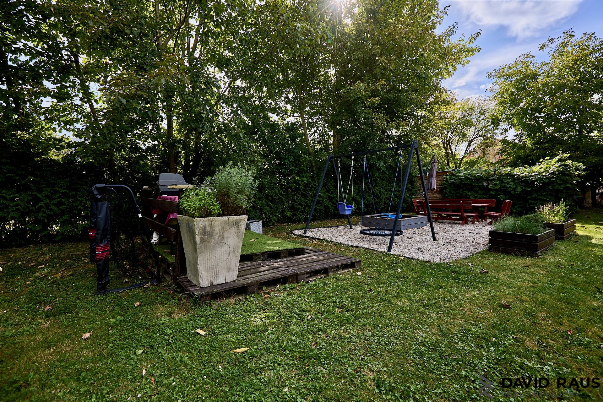 Součástí nemovitosti je prostorná zahrada se vzrostlými stromy a sadem, která nabízí naprosté soukromí i spoustu možností k odpočinku a zábavě. Do sadu se vstupuje kovovou brankou přímo ze zahrady přes dřevěný mostek – už samotný přechod působí kouzelně a navozuje atmosféru klidu. V zadní části zahrady je připravené posezení s grilem, podium pro společenská setkání a hřiště, které poskytuje dostatek místa nejen pro děti, ale i pro sportovní vyžití, třeba fotbal. Dva vzrostlé ořechy zde vytvářejí přirozený stín a mezi nimi je zavěšena houpací síť pro odpočinek. Celkový dojem doplňuje travnatá plocha a útulná zákoutí, kde si každý člen rodiny najde své místo. Tato zahrada se sadem působí jako vlastní oáza klidu – ideální pro rodinný život, zahradní slavnosti i relaxaci v soukromí přírody přímo za domem.