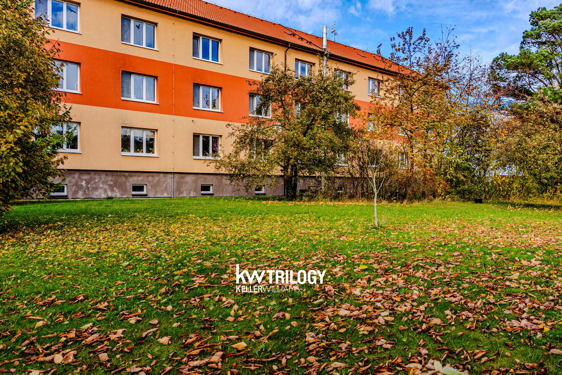 Součástí bytu je také prostorná sklepní kóje o velikosti 8 m², která nabízí dostatek úložného prostoru.