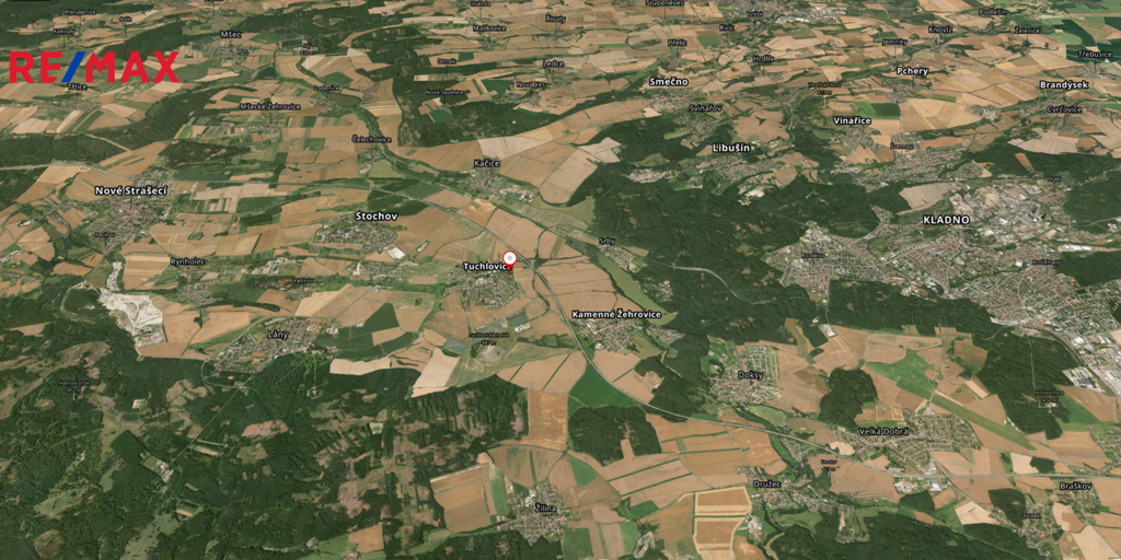 Situován je necelých 10 km od Kladna, nebo 25 km od Prahy: