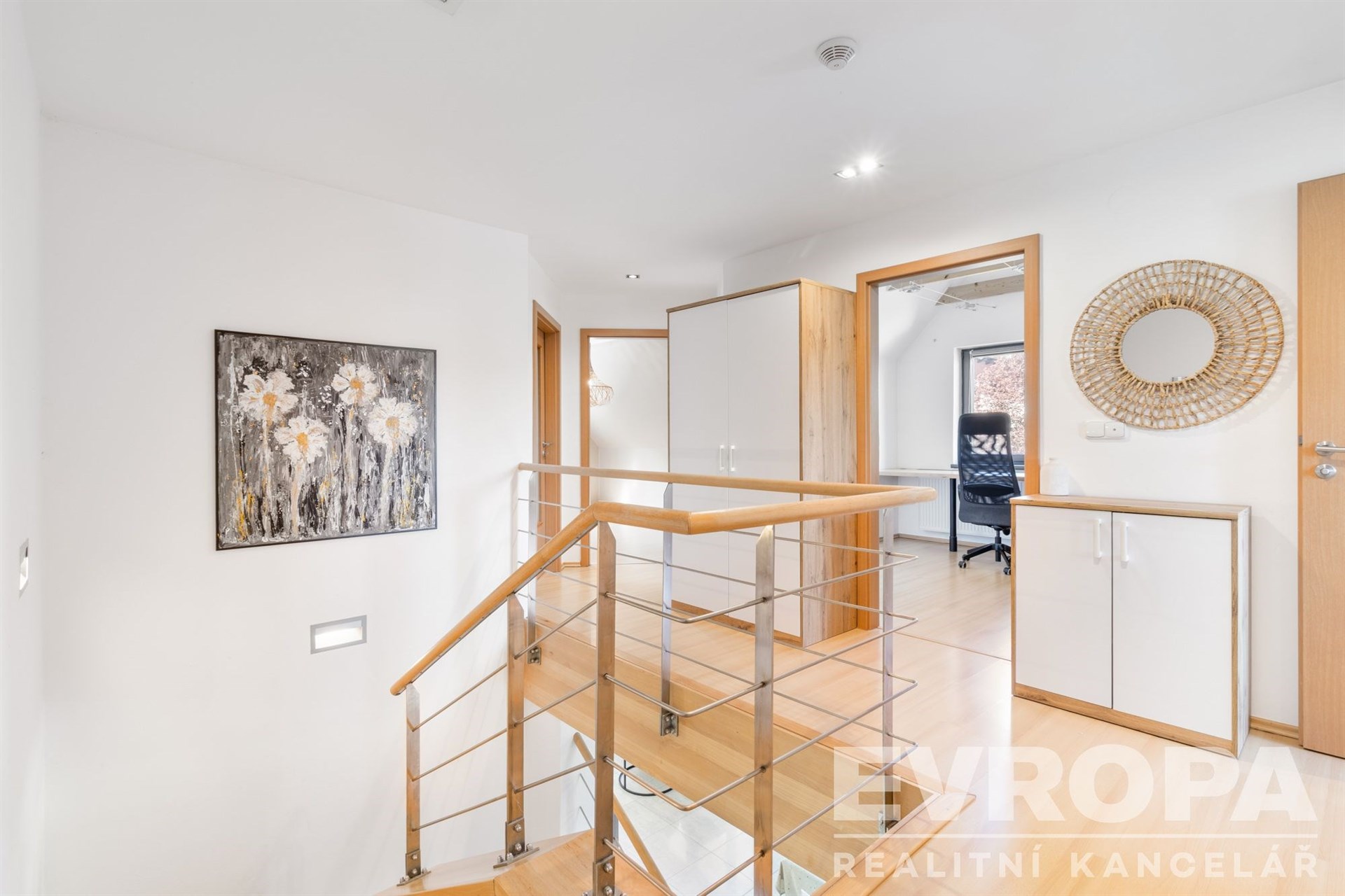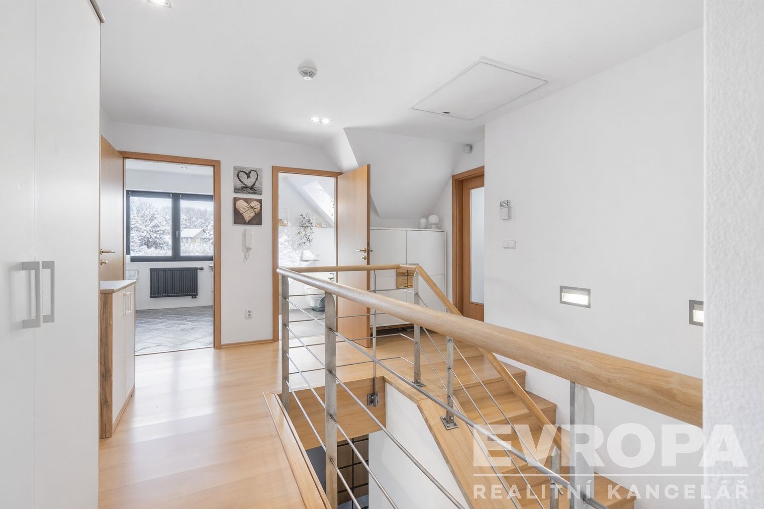 V patře najdete čtyři ložnice, koupelnu a samostatné WC. Nad druhým patrem je částečně pochůzná půda, ideální pro ukládání sezónních věcí.