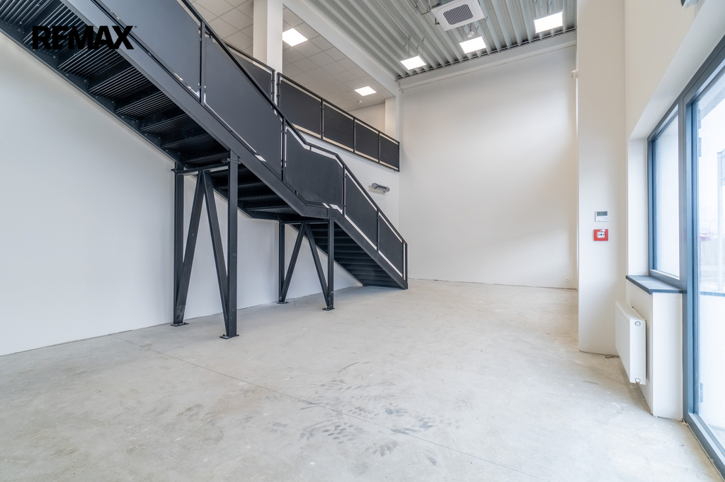 Reprezentativní komerční prostory 289 m² u letiště – showroom a kanceláře v moderním industriálním a