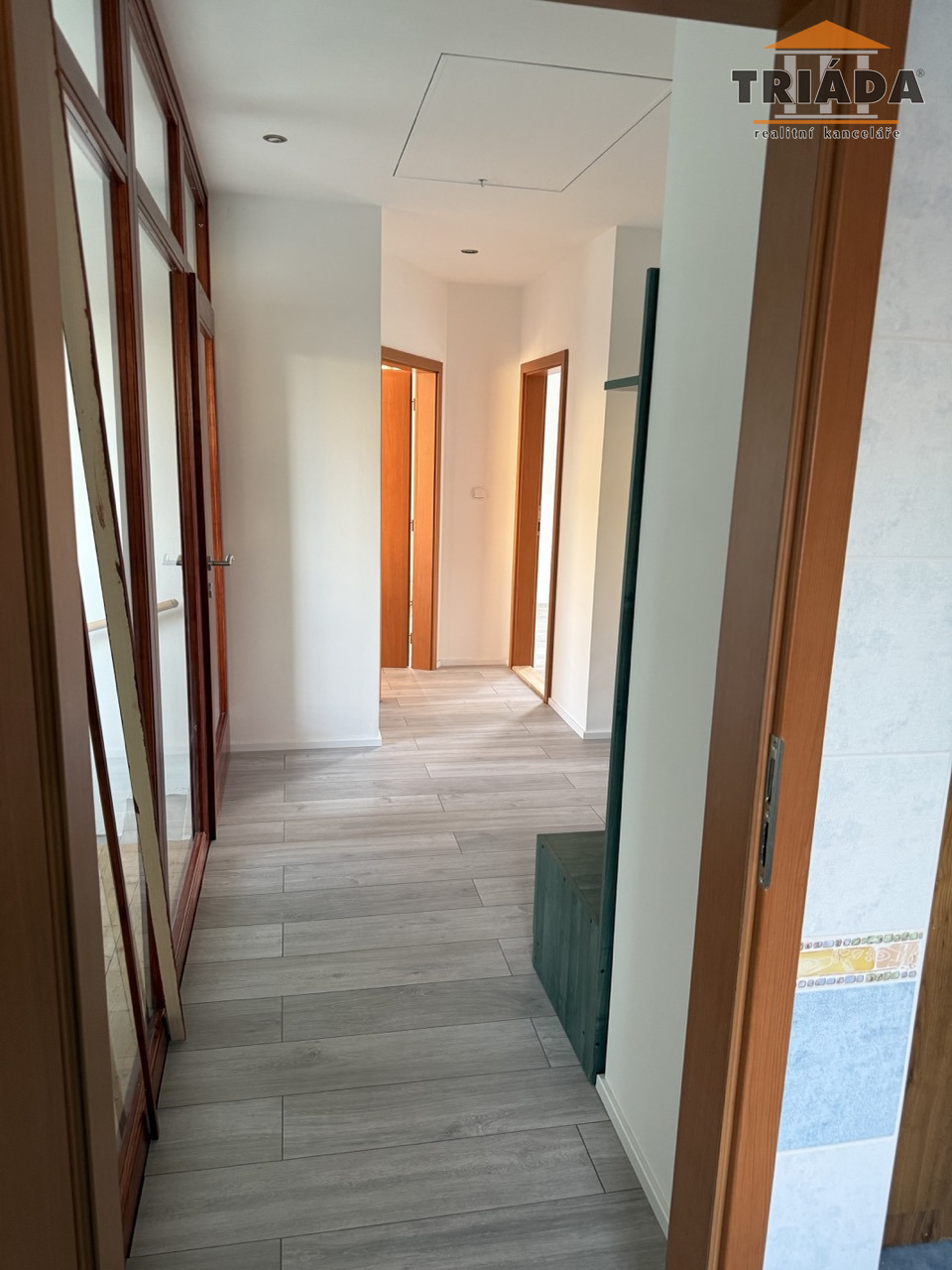 Nabízíme pronájem bytu 3+kk ve 2.NP rodinného domu v Turnově ul. Čapkova. Byt je po částečné rekonstrukci v dobrém stavebně-technickém stavu. Dispozice: chodba se schodištěm, obytný pokoj, velká koupelna s vanou a WC, obytný pokoj s kuchyňským koutem a balkónem, obytný pokoj s balkónem. Teplá voda a topení ústřední - tepelné čerpadlo, VVŘ, el. energie 230/400V, kanalizace obecní. Pěkné a klidné místo ve vilové části města. Cca 5 min chůze je ZŠ, MŠ, městský park a 10 min chůze je to do centra města. Měsíční nájem 17 000 Kč, zálohy na energie 4000 Kč. Skládá se tříměsíční vratná kauce. Celková plocha bytu je 63,5 m2.