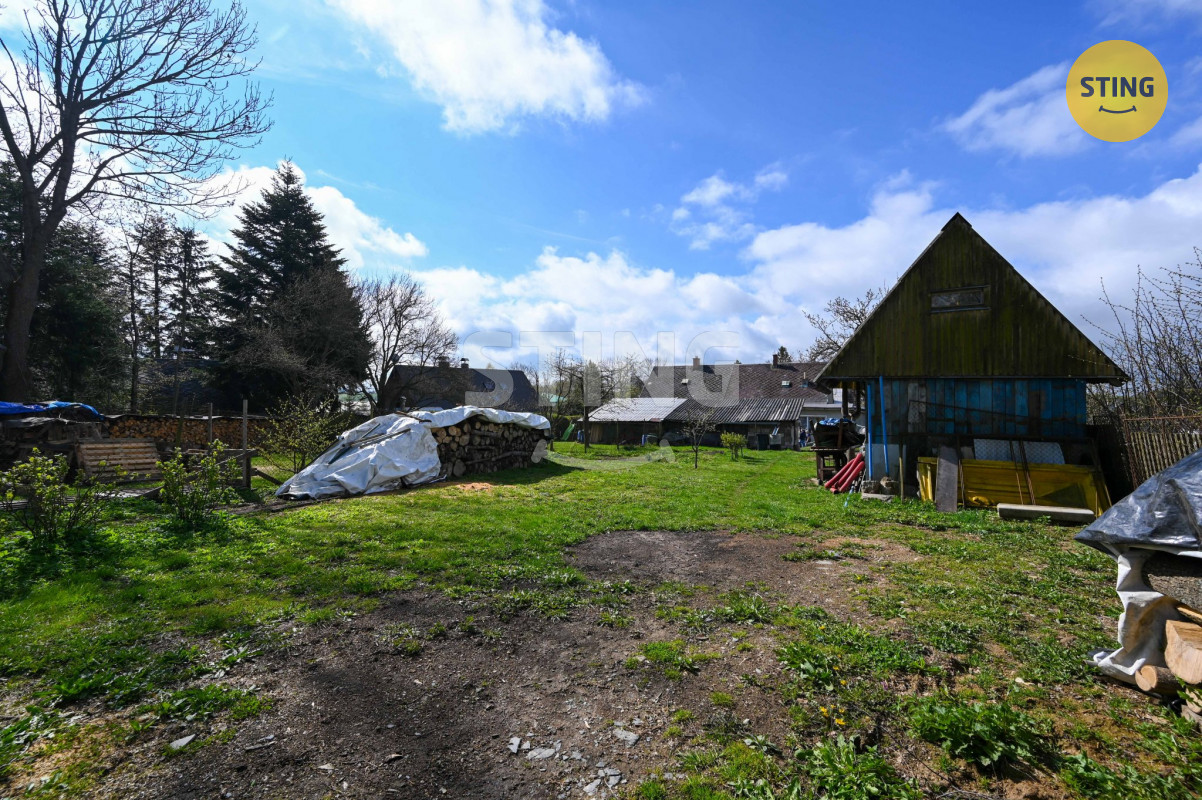 Zahrada a zázemí: K domu náleží rovinatá zahrada, která má velkou výhodu v podobě vstupu i ze zadní strany pozemku. To umožňuje pohodlný příjezd techniky, návoz dřeva nebo přímý vstup do přírody bez nutnosti procházet domem.