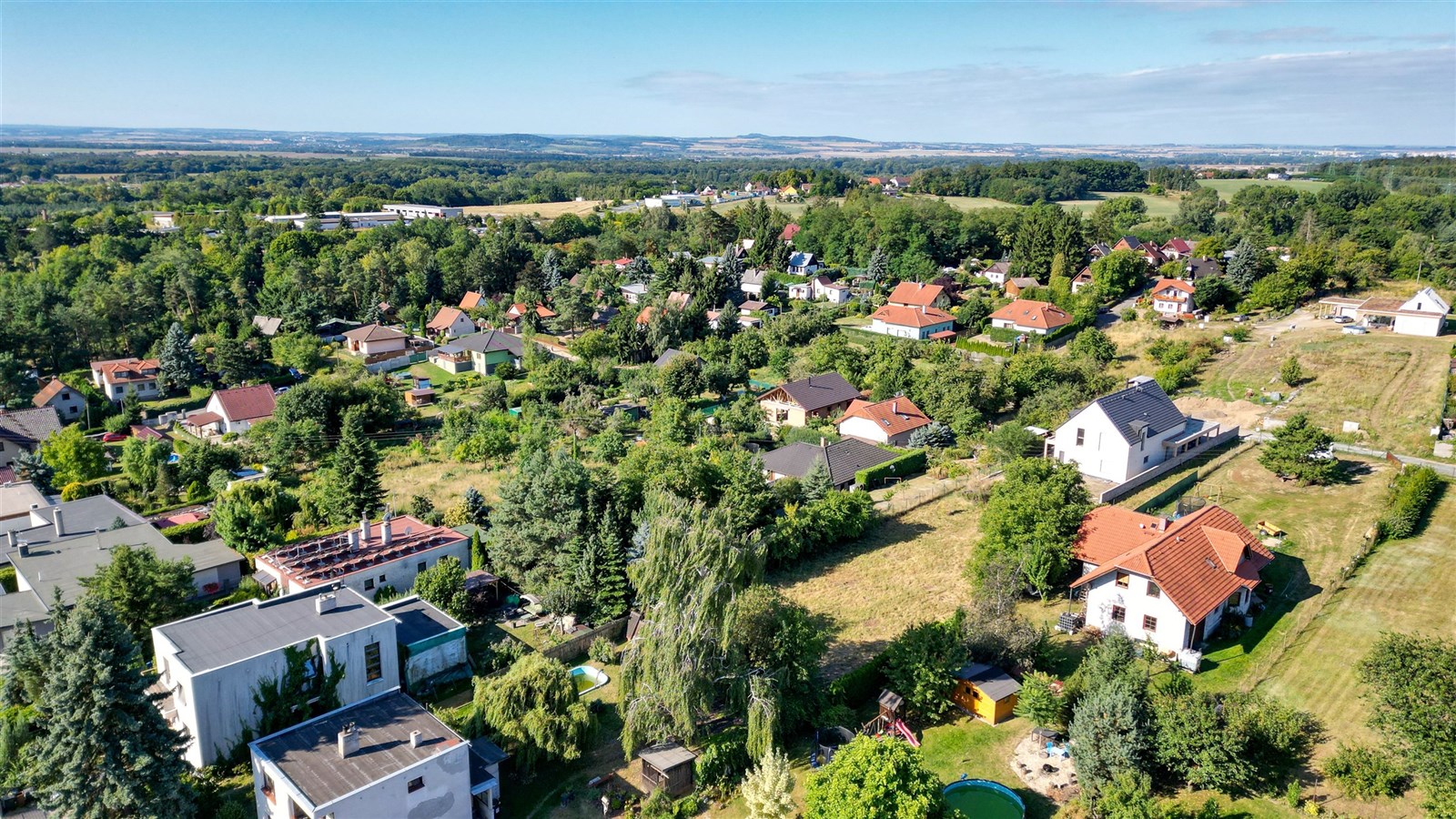 Stavební pozemek 1 148 m² v Týnci nad Labem – klid, výhledy a občanská vybavenost na dosah