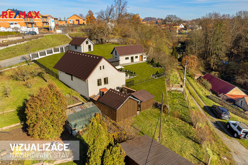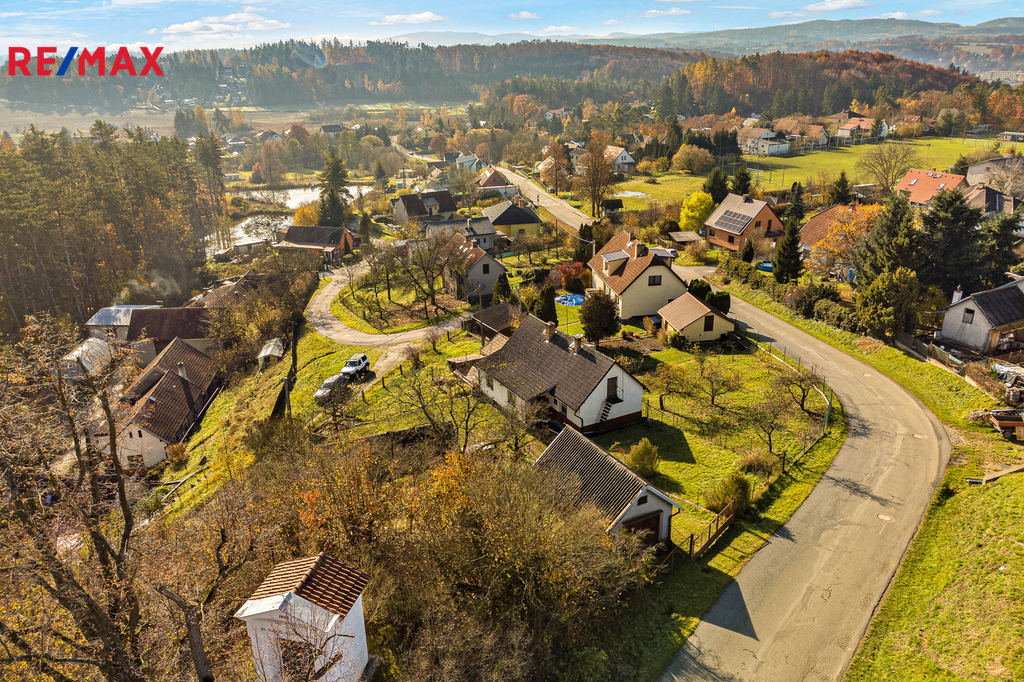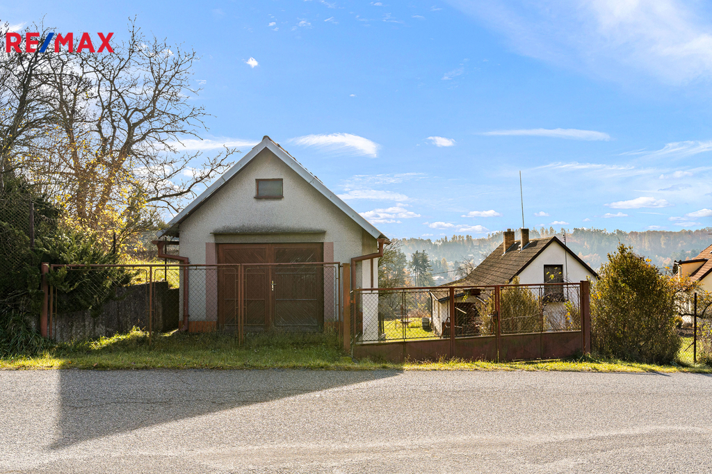 Nemovitost stojí na prostorném, jižně orientovaném pozemku o celkové výměře 1 455 m² a kromě samotné chalupy k ní náleží také soubor vedlejších staveb – zděné i dřevěné kůlny a zděné garáže, které poskytují dostatek prostoru pro dílnu, skladování i parkování.